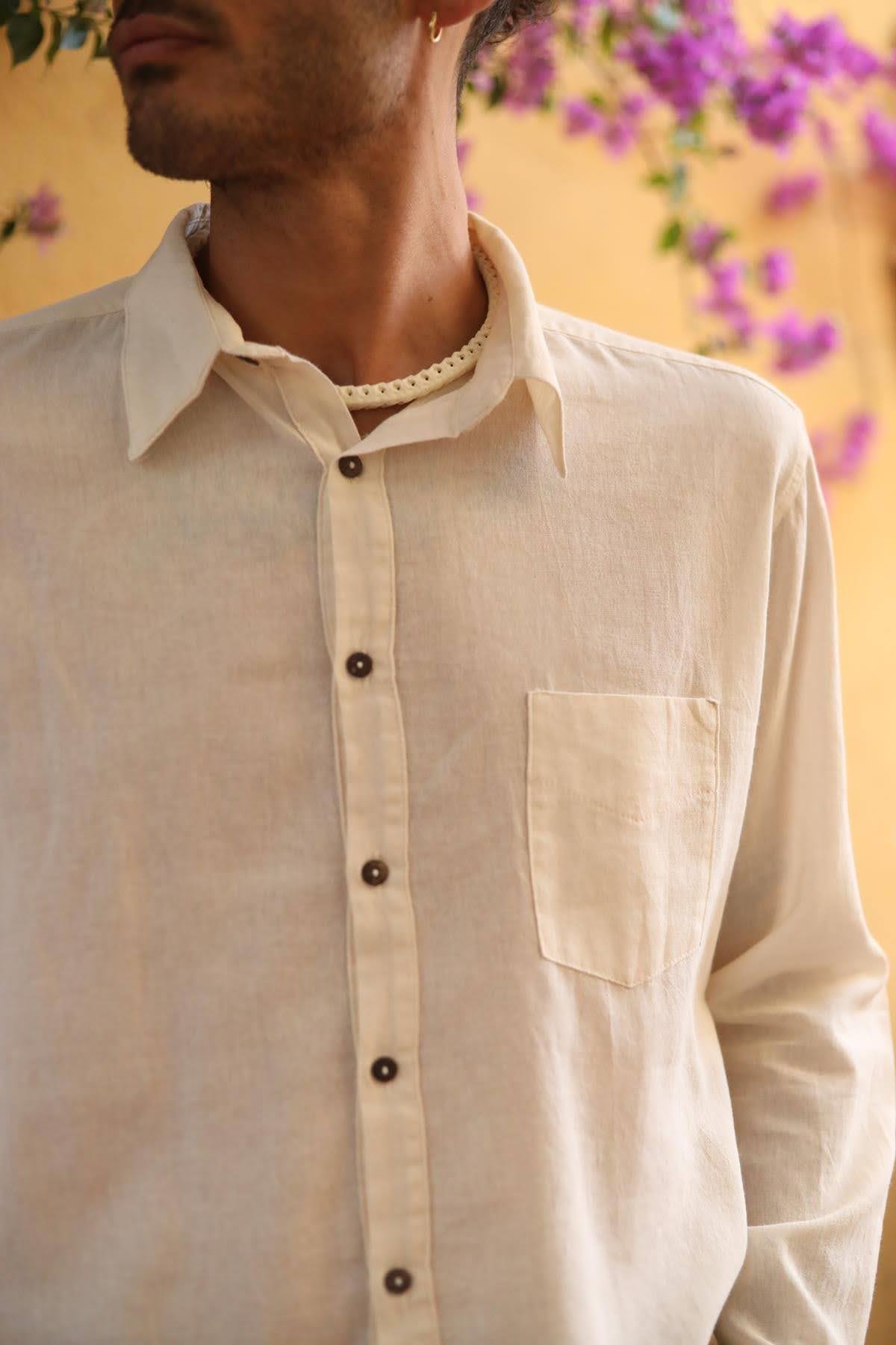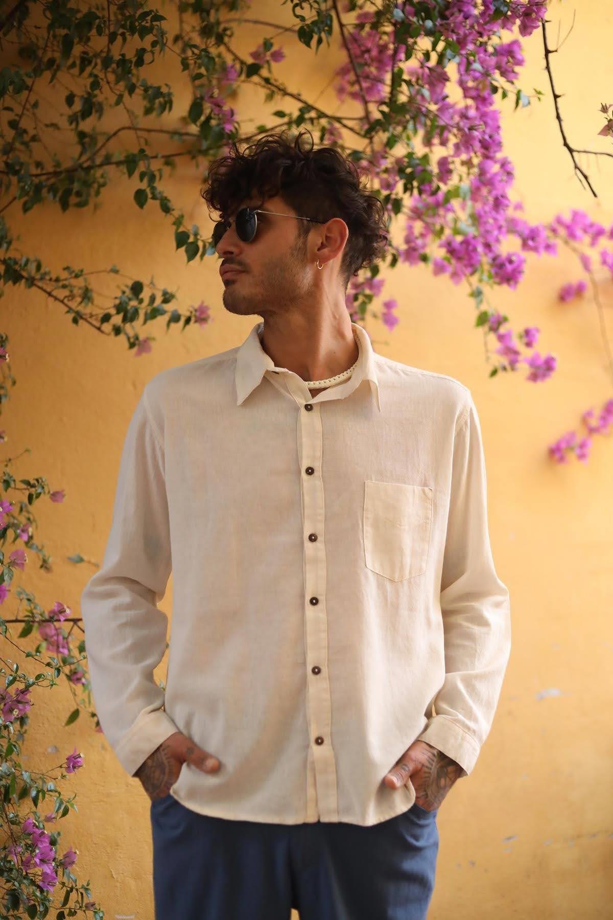 Cream Color Stitched Men's Shirt (EG-TO-011-PA-KR-S)