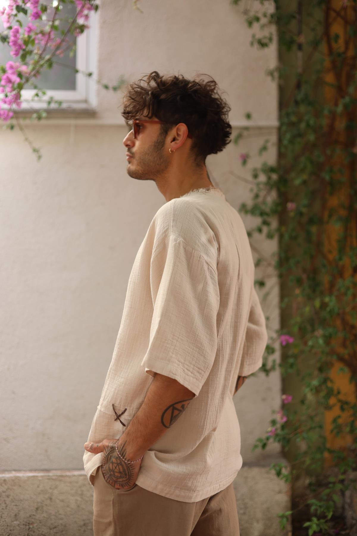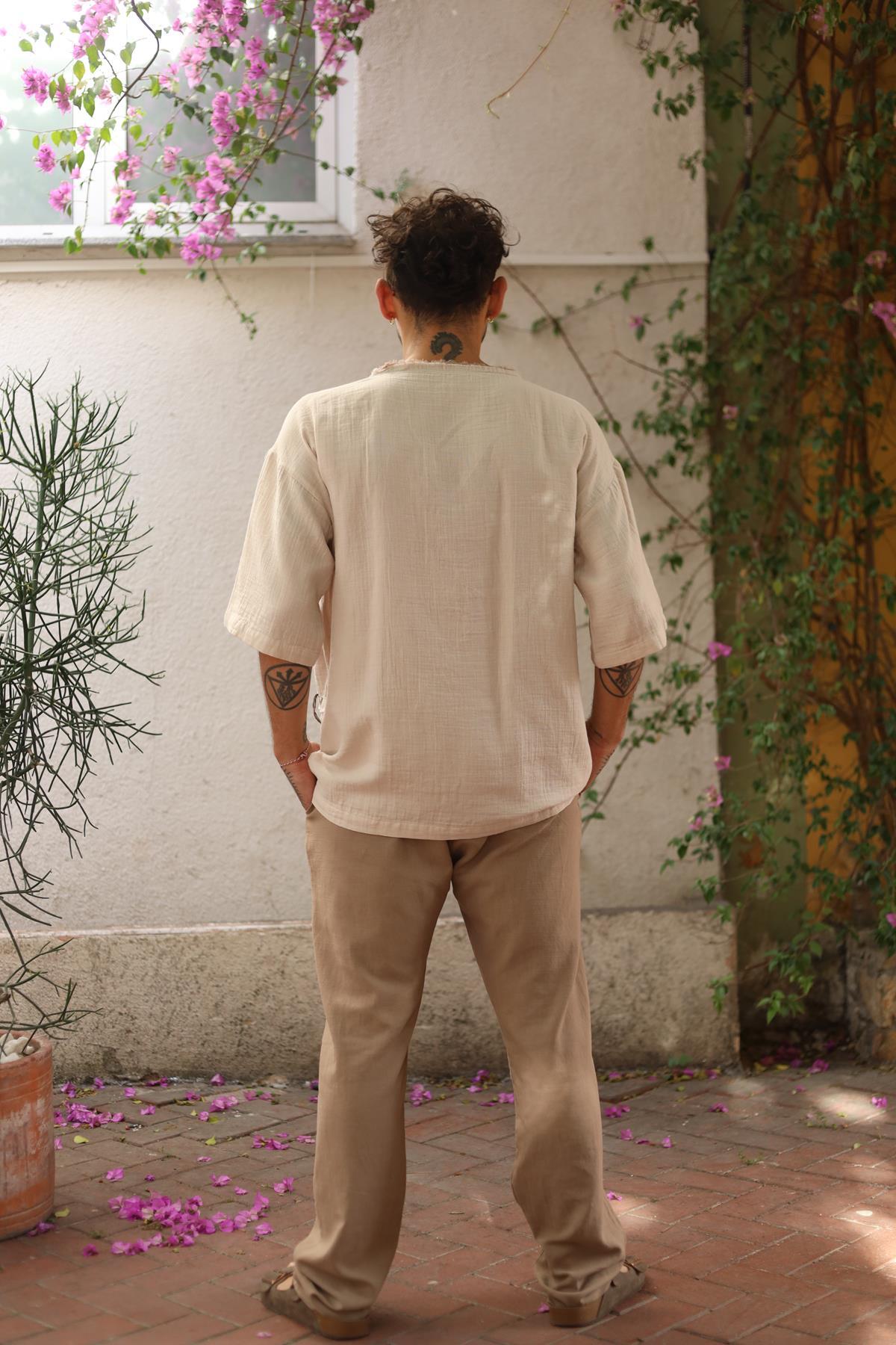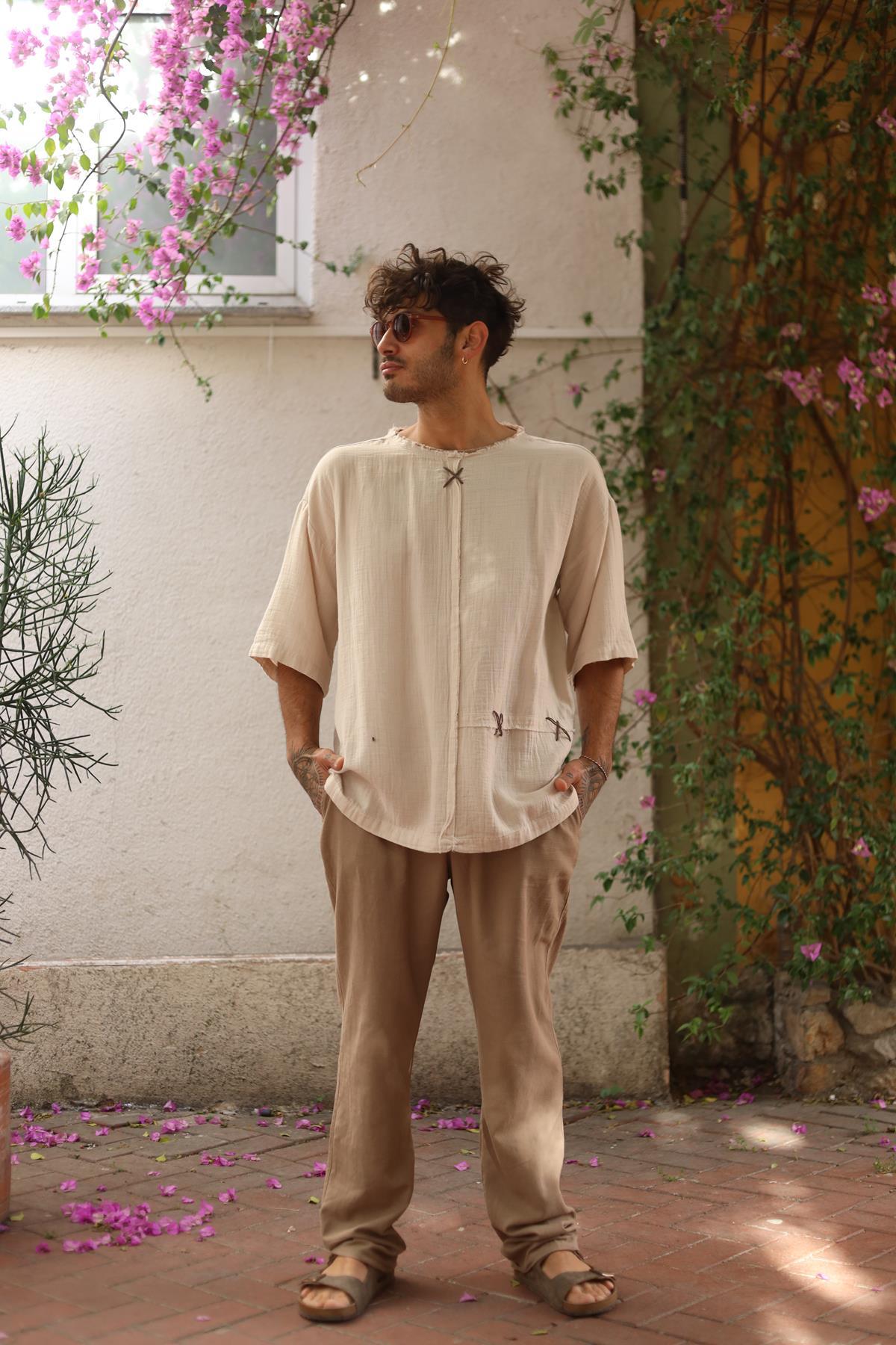 Cream Color Stitched Men's T-Shirt (ETS-WR-001-PA-KR-STD)