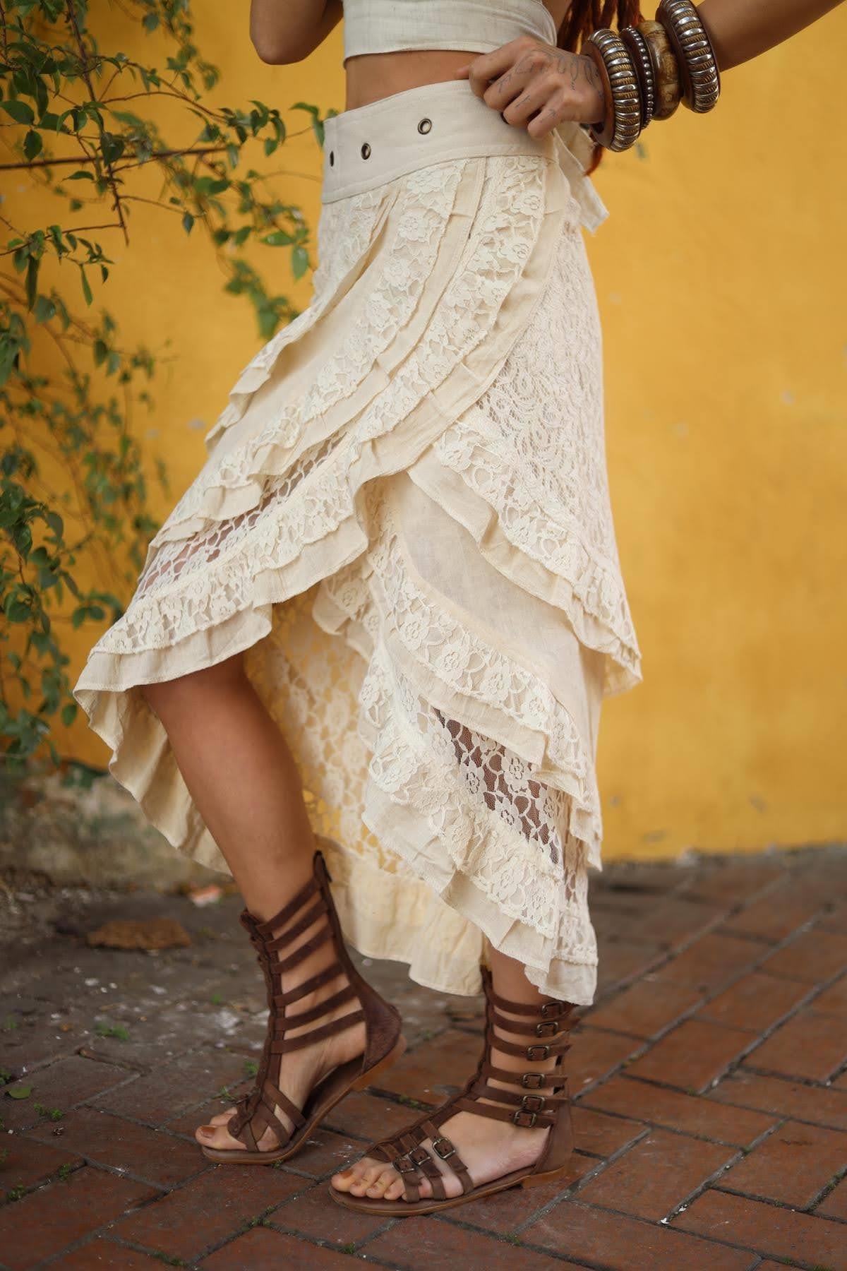 Cream Color Wrap Layered Lace Skirt