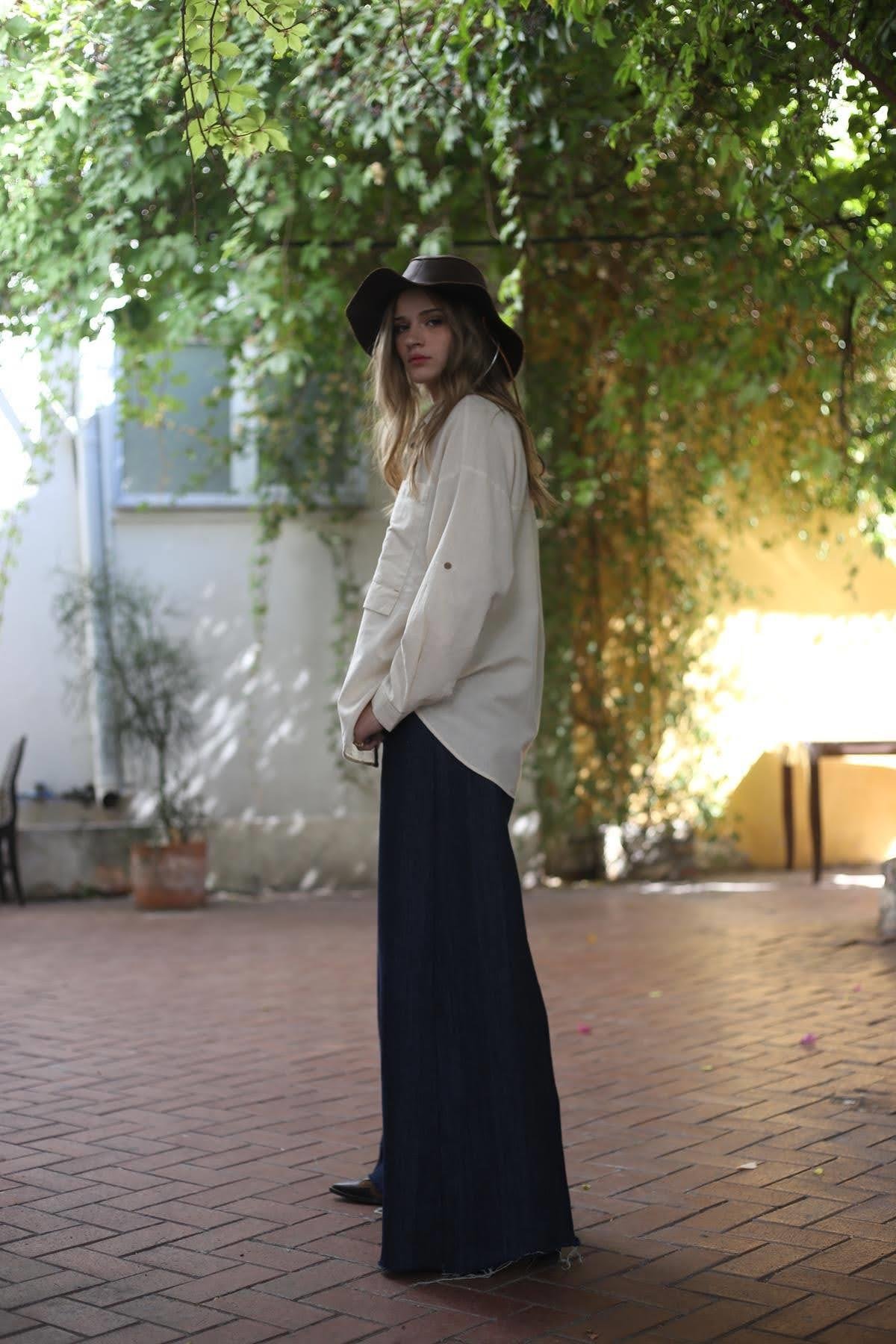 Krem Rengi Cebi Parça Detaylı Gömlek
