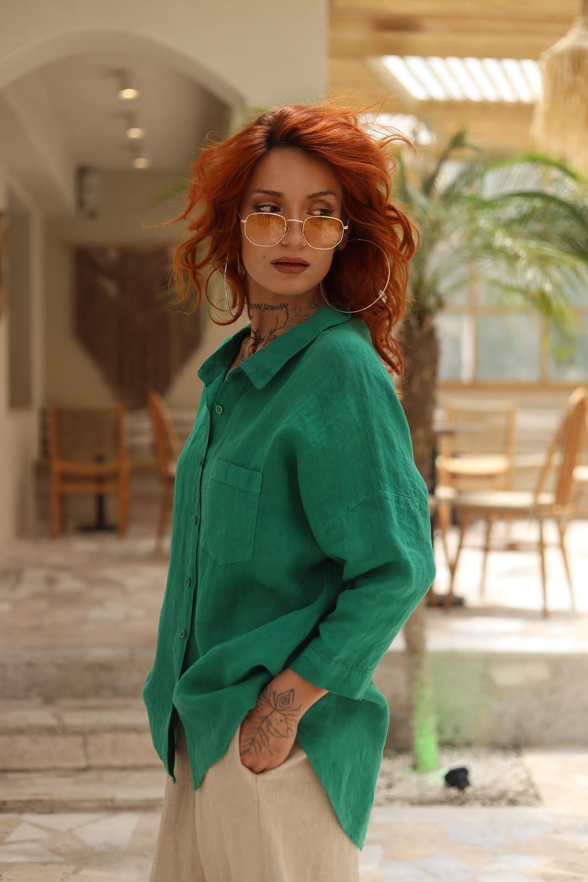 Dark Green Back Ring Detailed Shirt (KG-PM-003-KTN-KYE-STD)