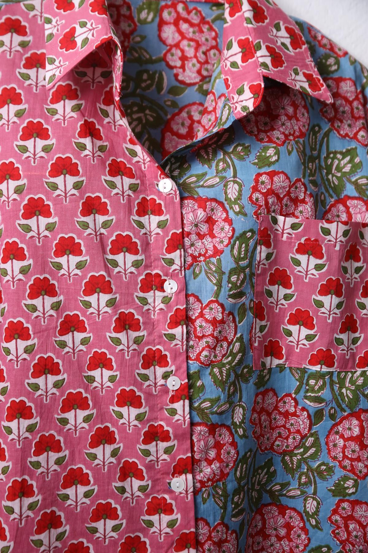 Dusty Rose Flower Patterned Pocket Shirt