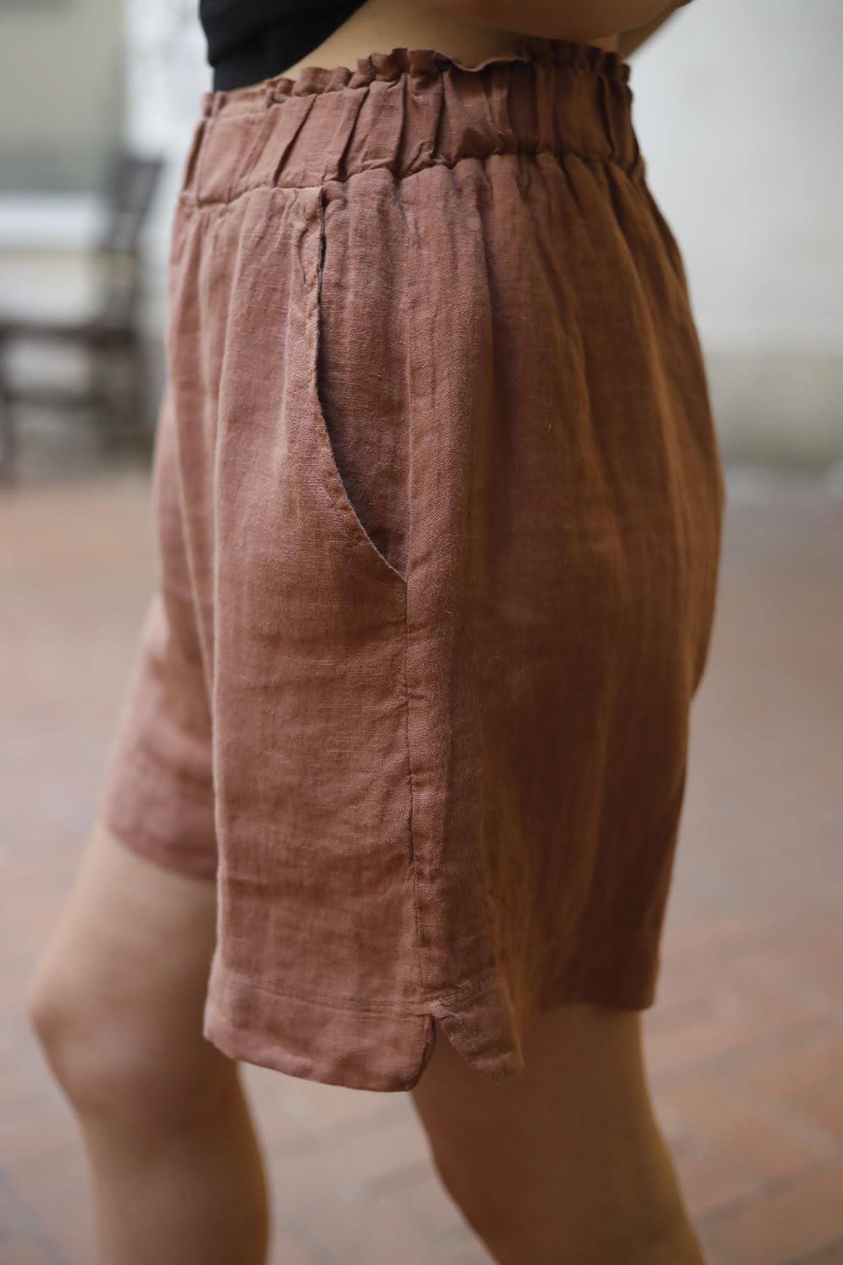 Dusty Rose Side Slit Linen Short (KSRT-IPK-001-KTN-GUK-S/M)