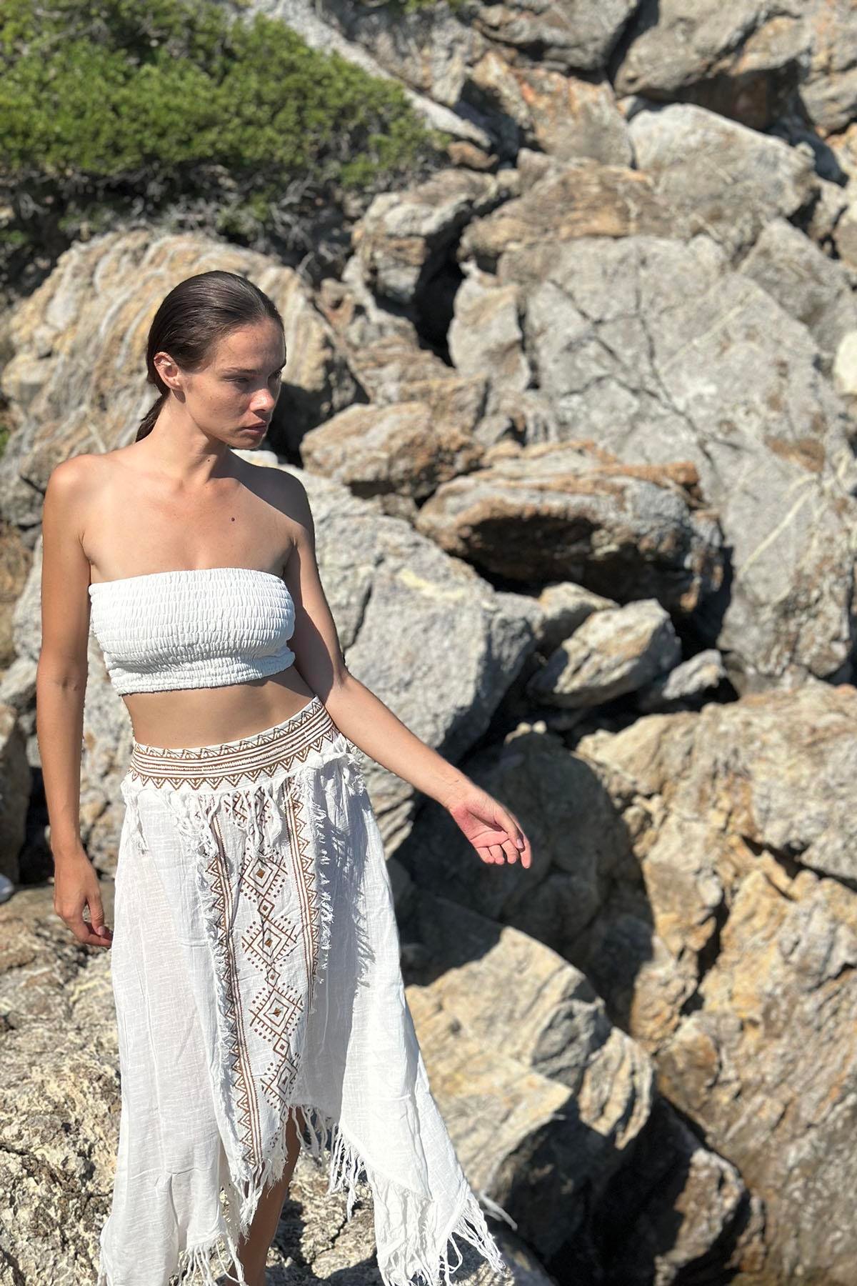 Ecru Authentic Patterned Asymmetrical Skirt (KET-ERK-002-PA-EK-STD)