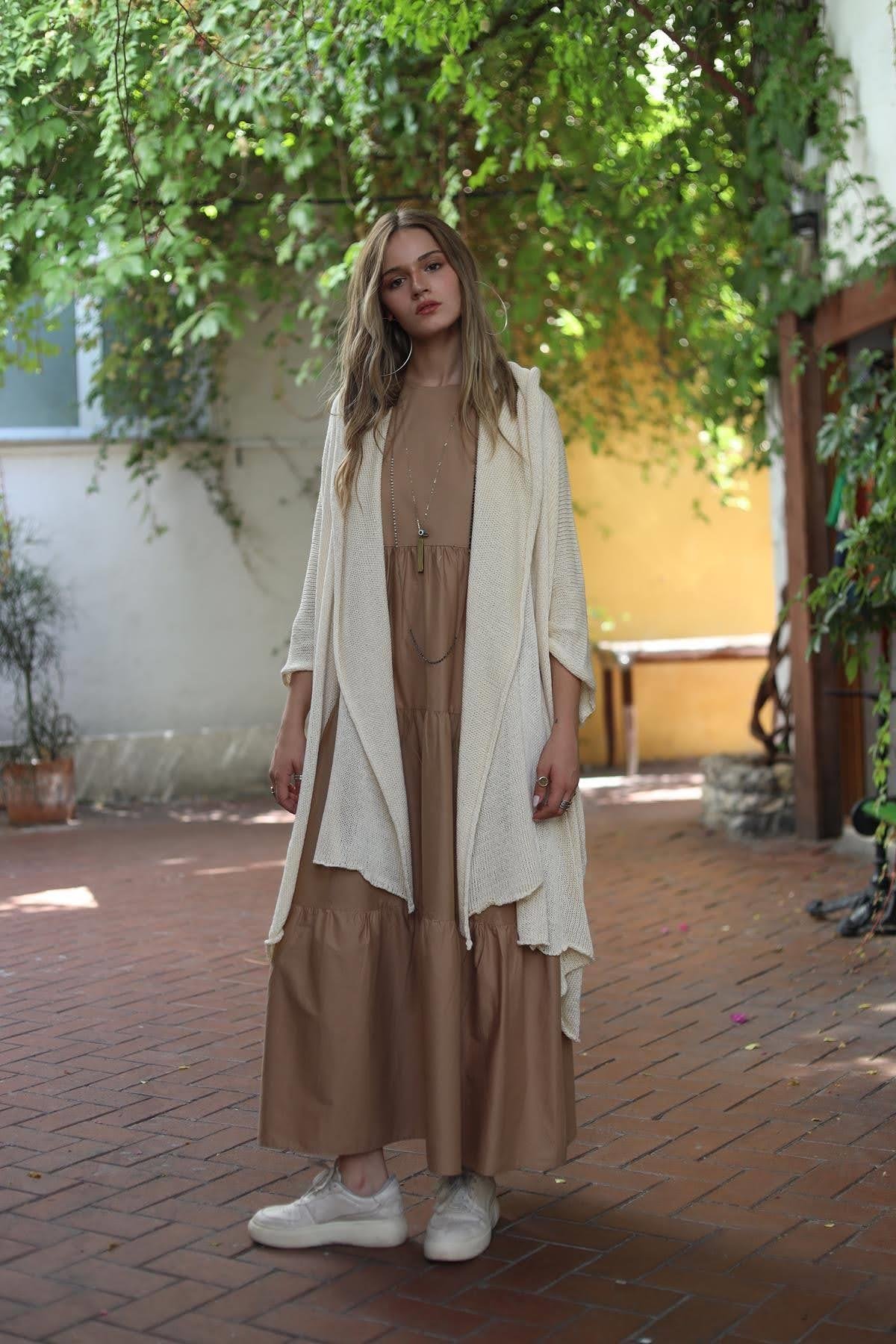 Ekru Şallı Arkası Dikişli Hırka
