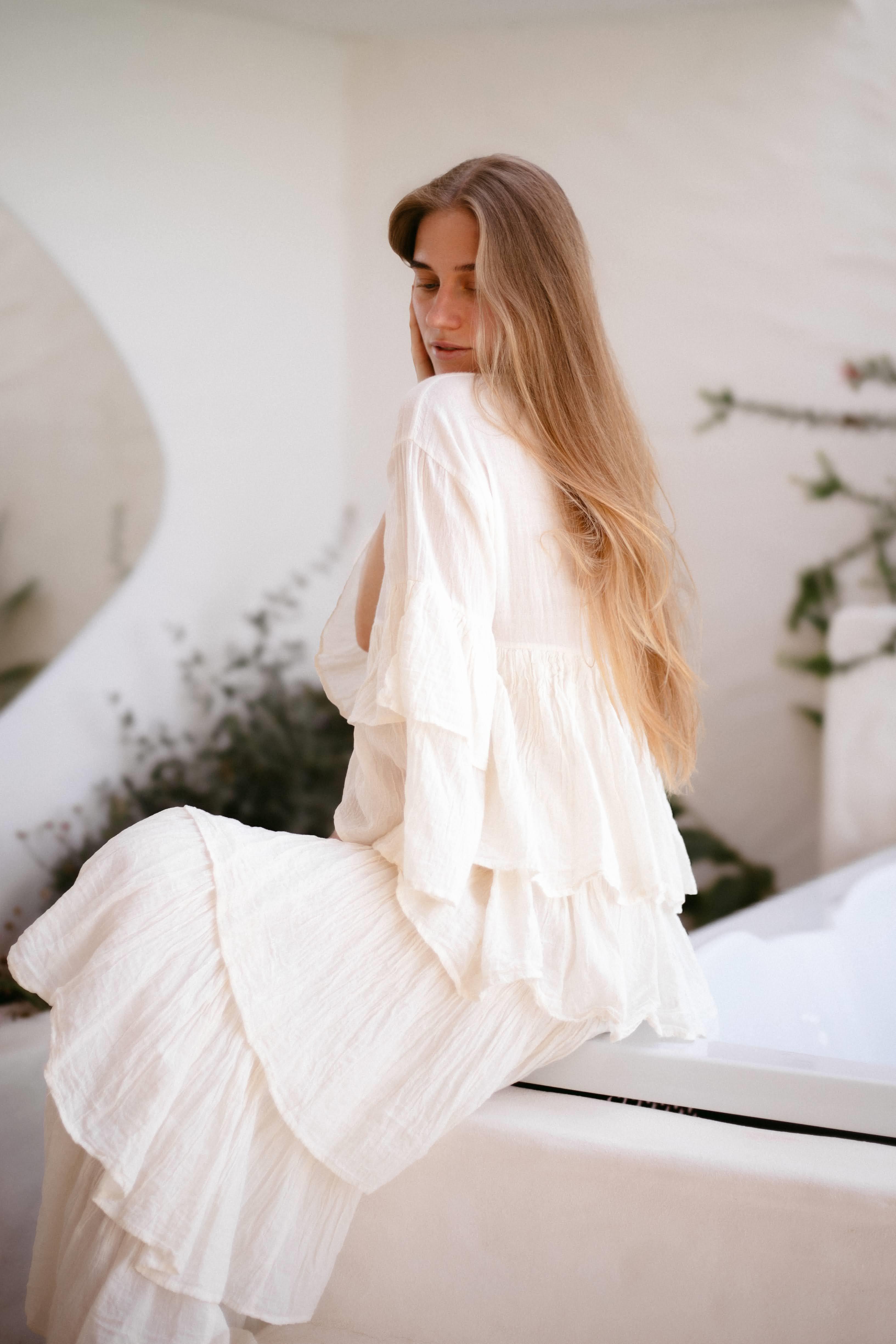 Ecru Flounced Bohemian Kimono (KKFN-ASD-006-PA-EK-STD)