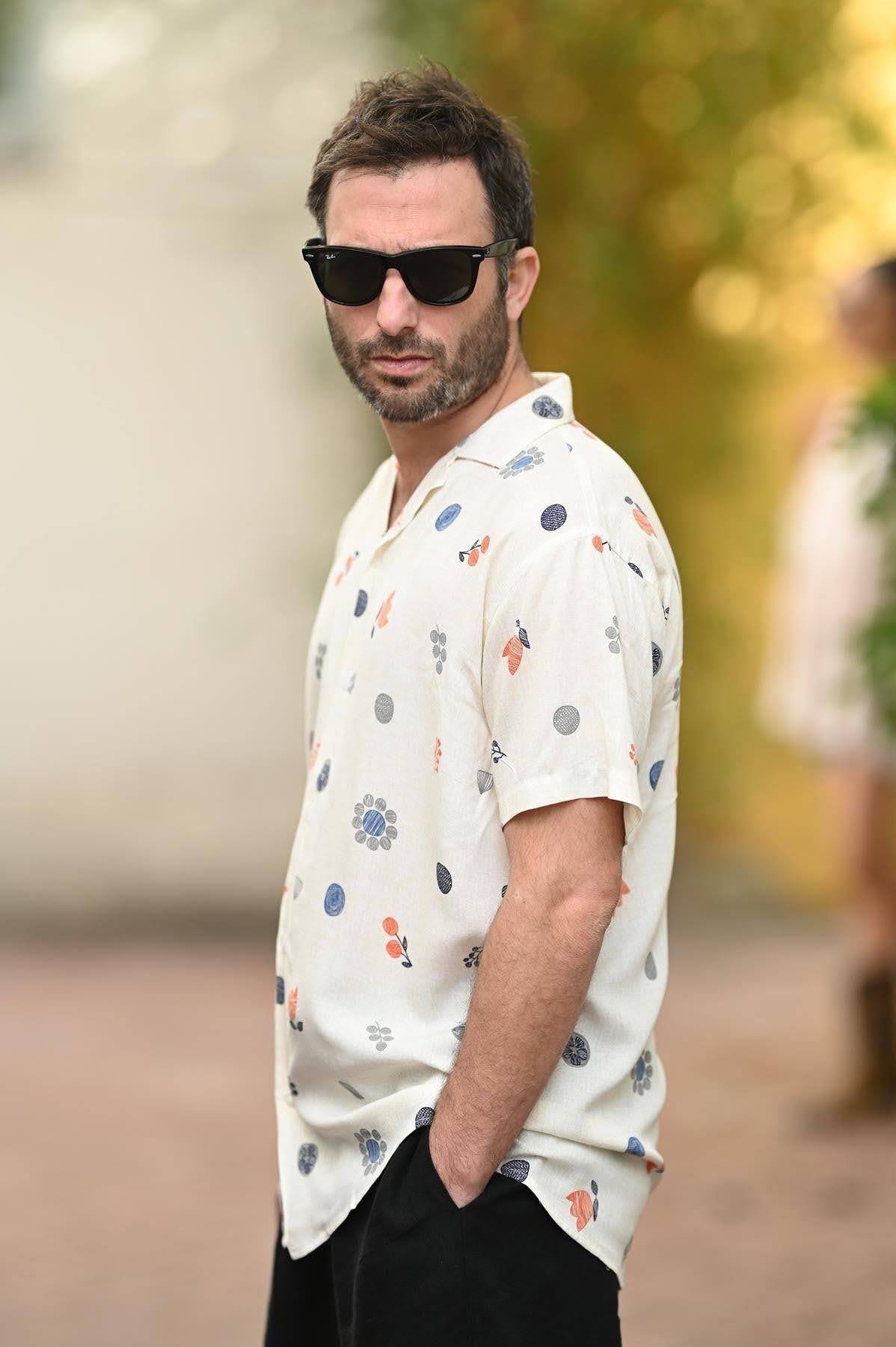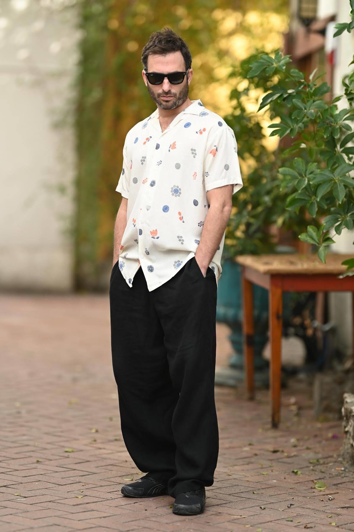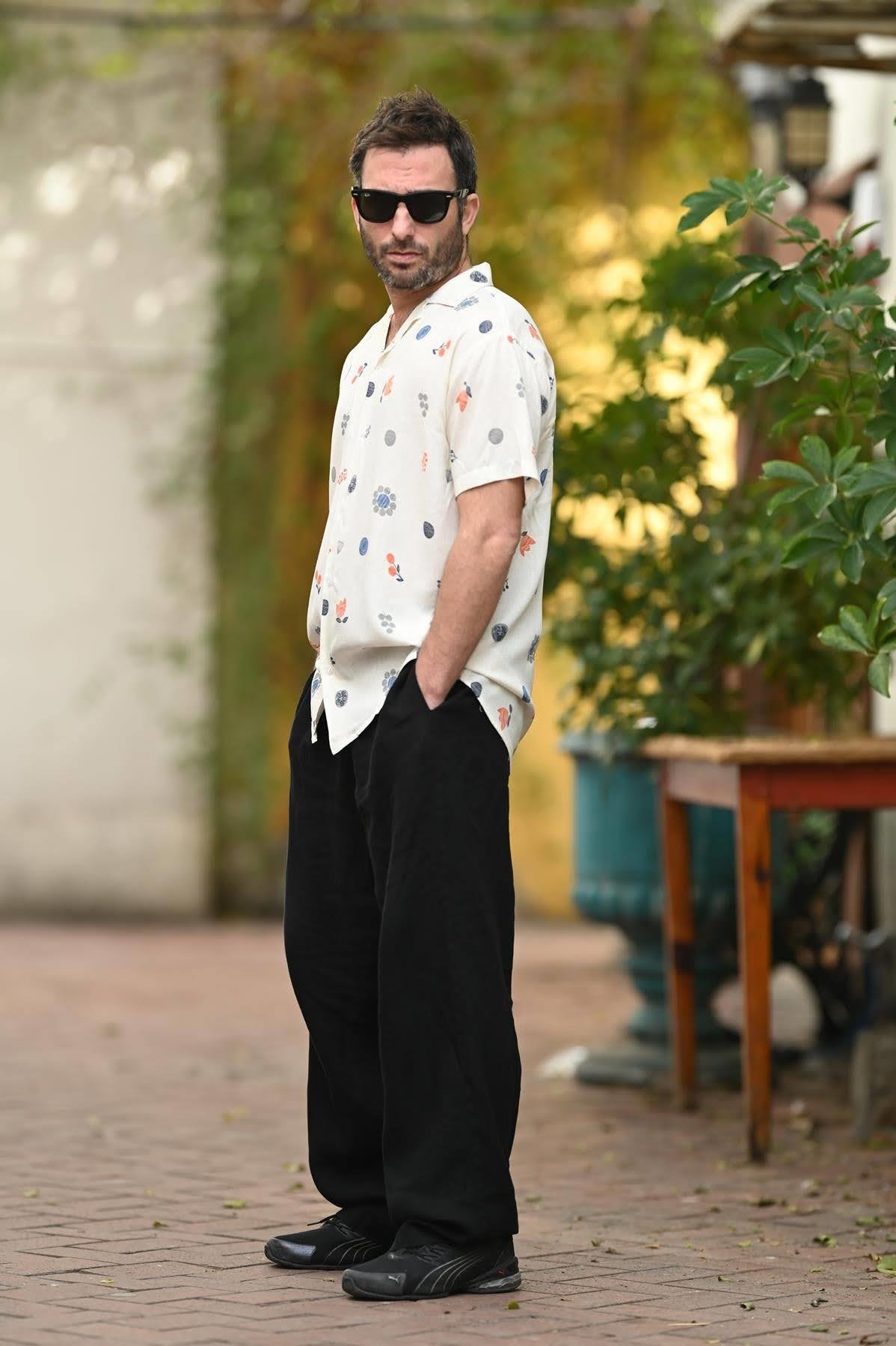 Ecru Patterned Short Sleeve Men's Shirt