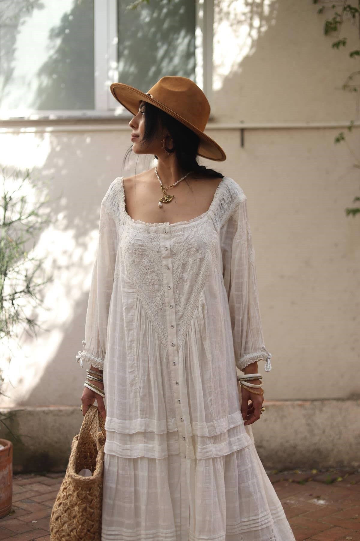Ekru Dantel Detaylı Ajurlu Düğmeli Elbise (KE-RAH-010-PA-EK-STD)