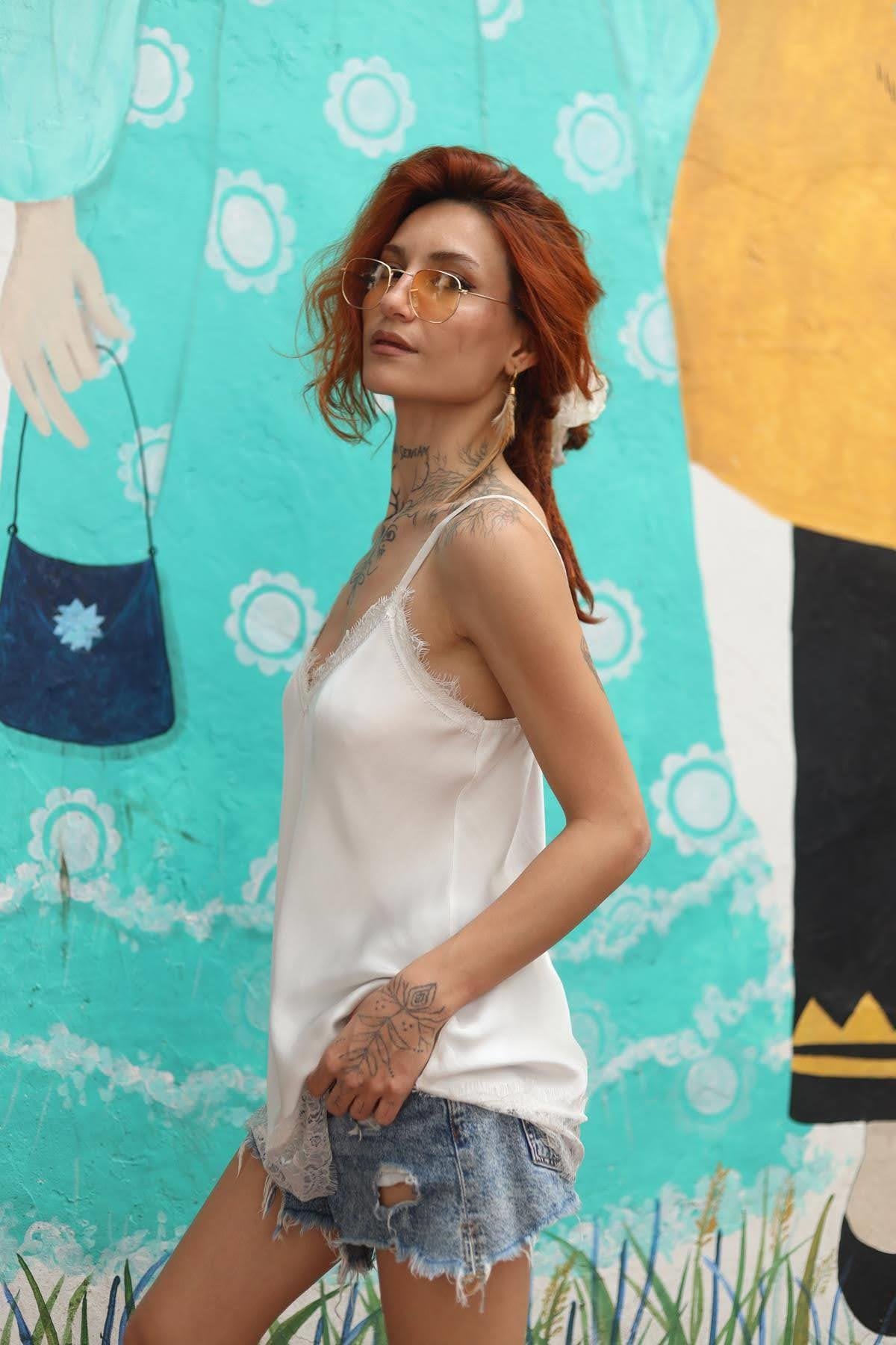 Ekru İnce Askılı Dantelli Bluz (KB-PM-041-VI-EK-STD)