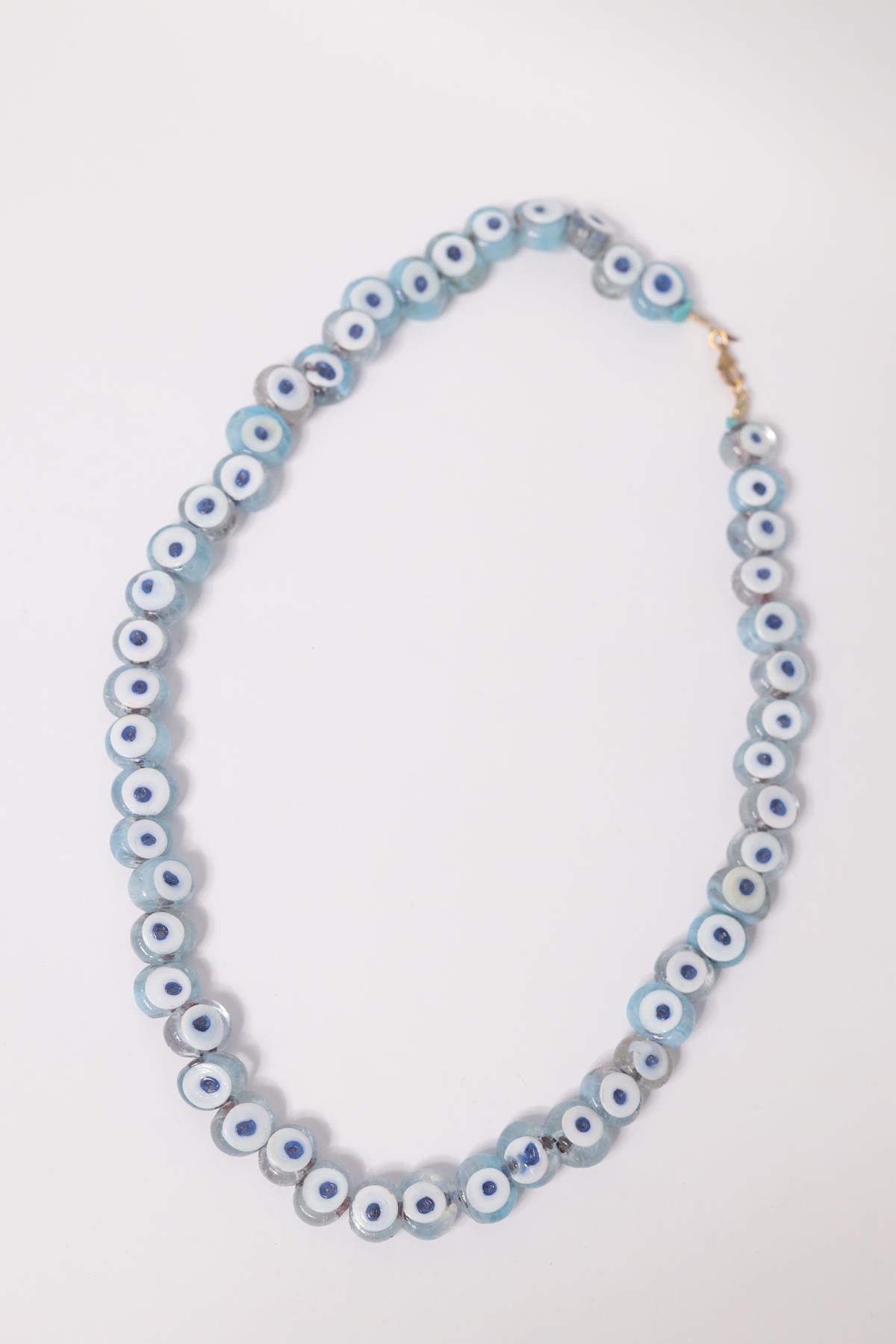 Açık Mavi Cam Nazar Boncuklu Tasarım Kolye