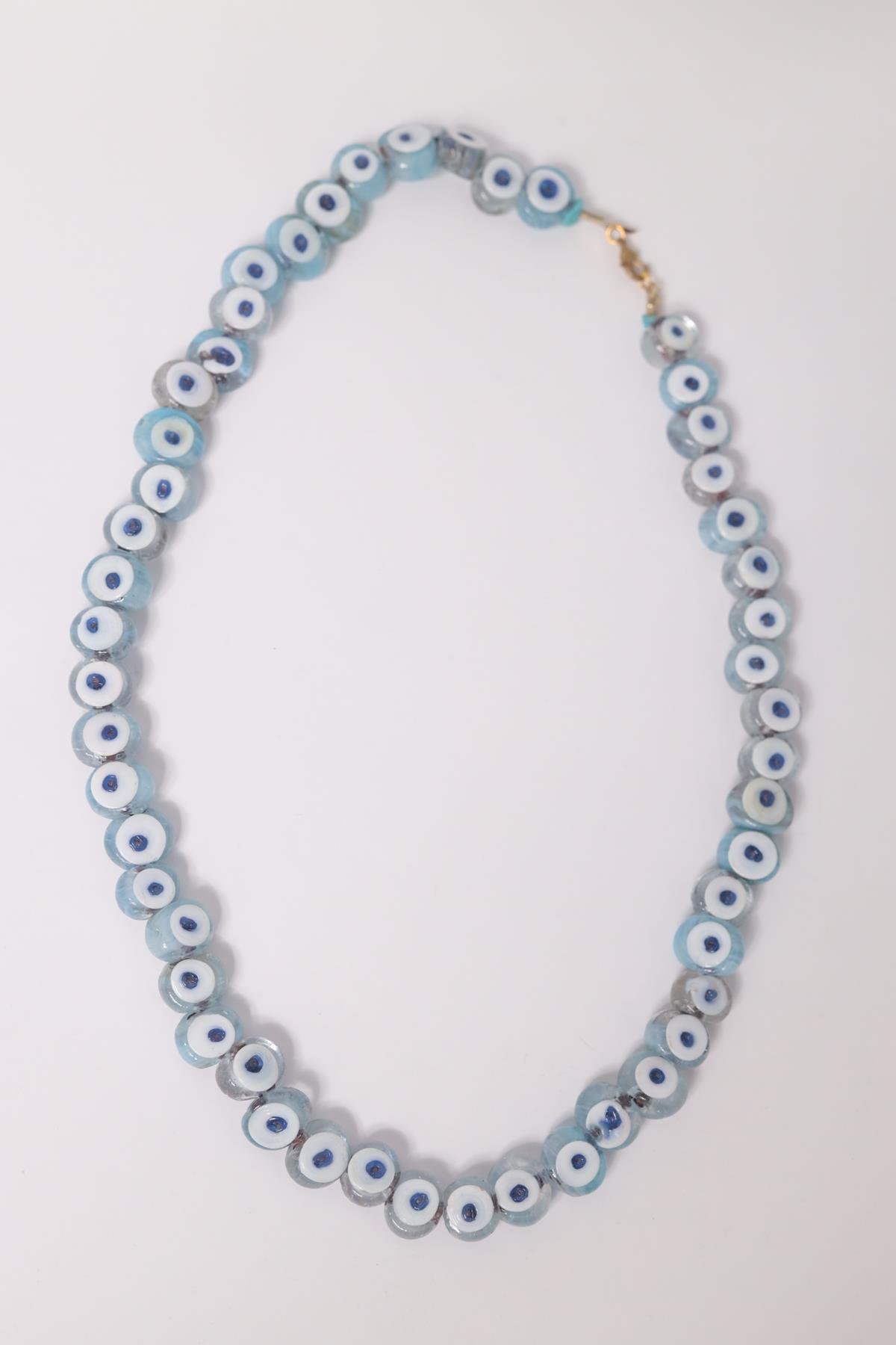Açık Mavi Cam Nazar Boncuklu Tasarım Kolye (TA-KO-1617)