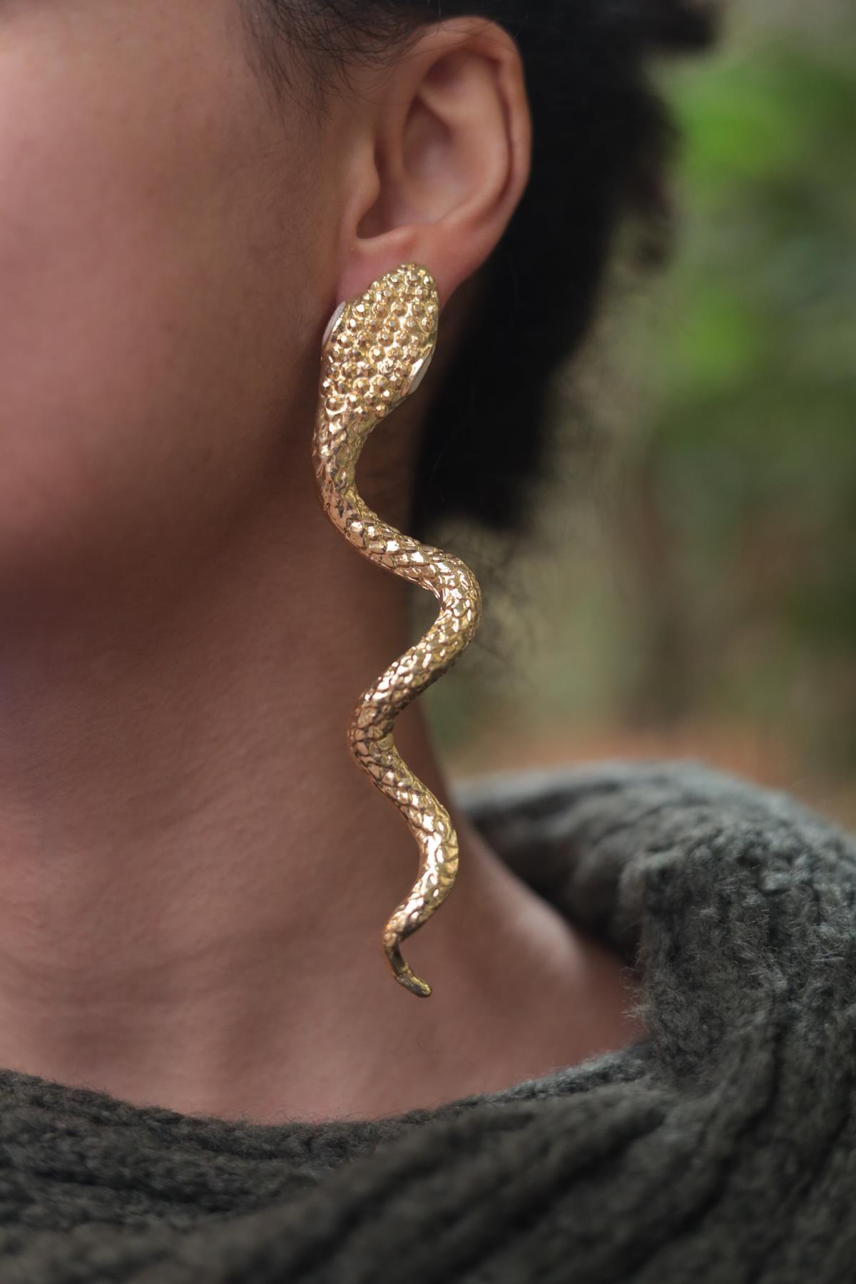 Altın Kaplama Uzun Yılanlı Küpe (TA-KU-1193)