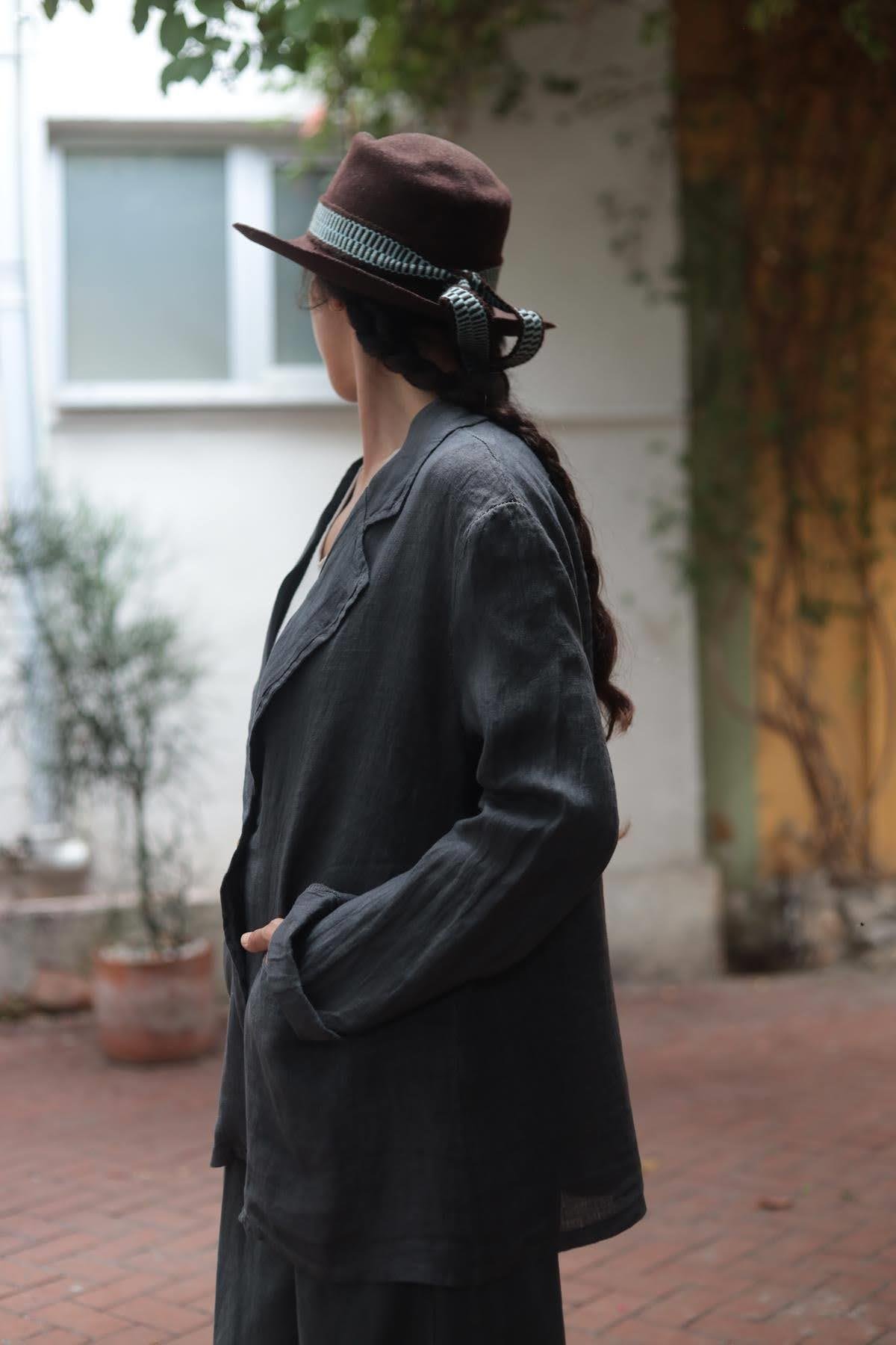 Antrasit Cepli Tek Düğmeli Keten Ceket (KC-FAL-013-KTN-ANT-STD)