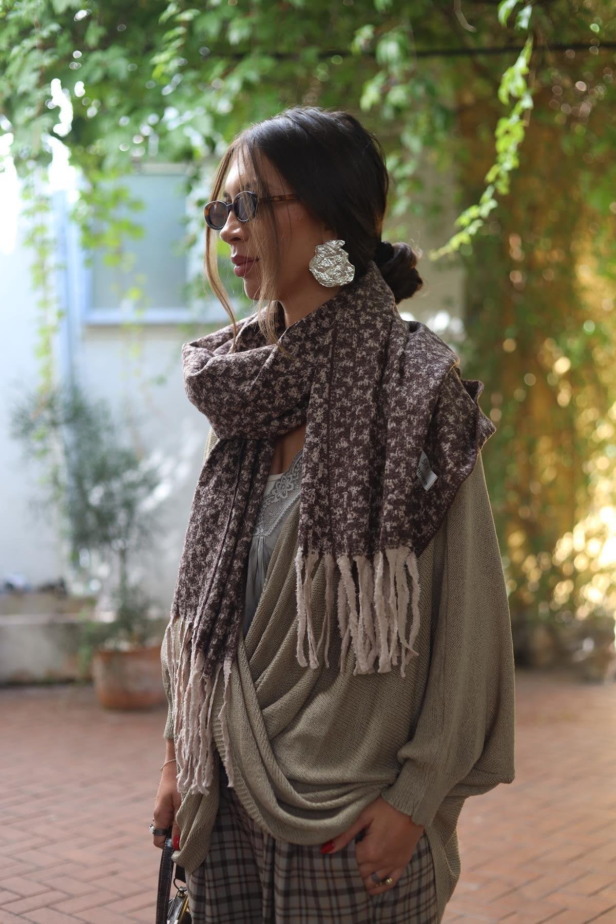 Antrasit Kazayağı Desenli Kaşmir Şal