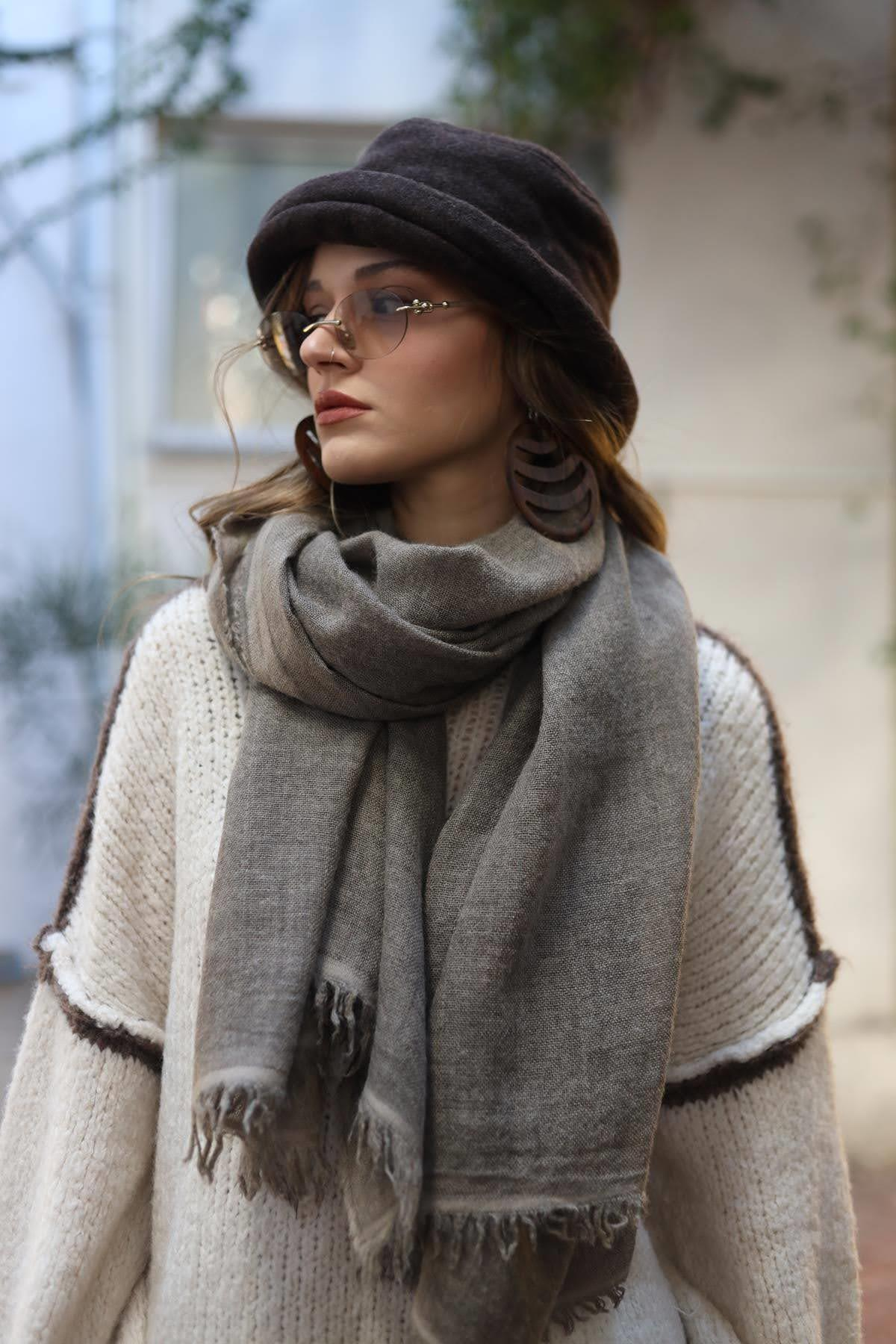 Antrasit Kenarları Saçaklı Şal (ASL-FAL-001-AK-ANT-STD)