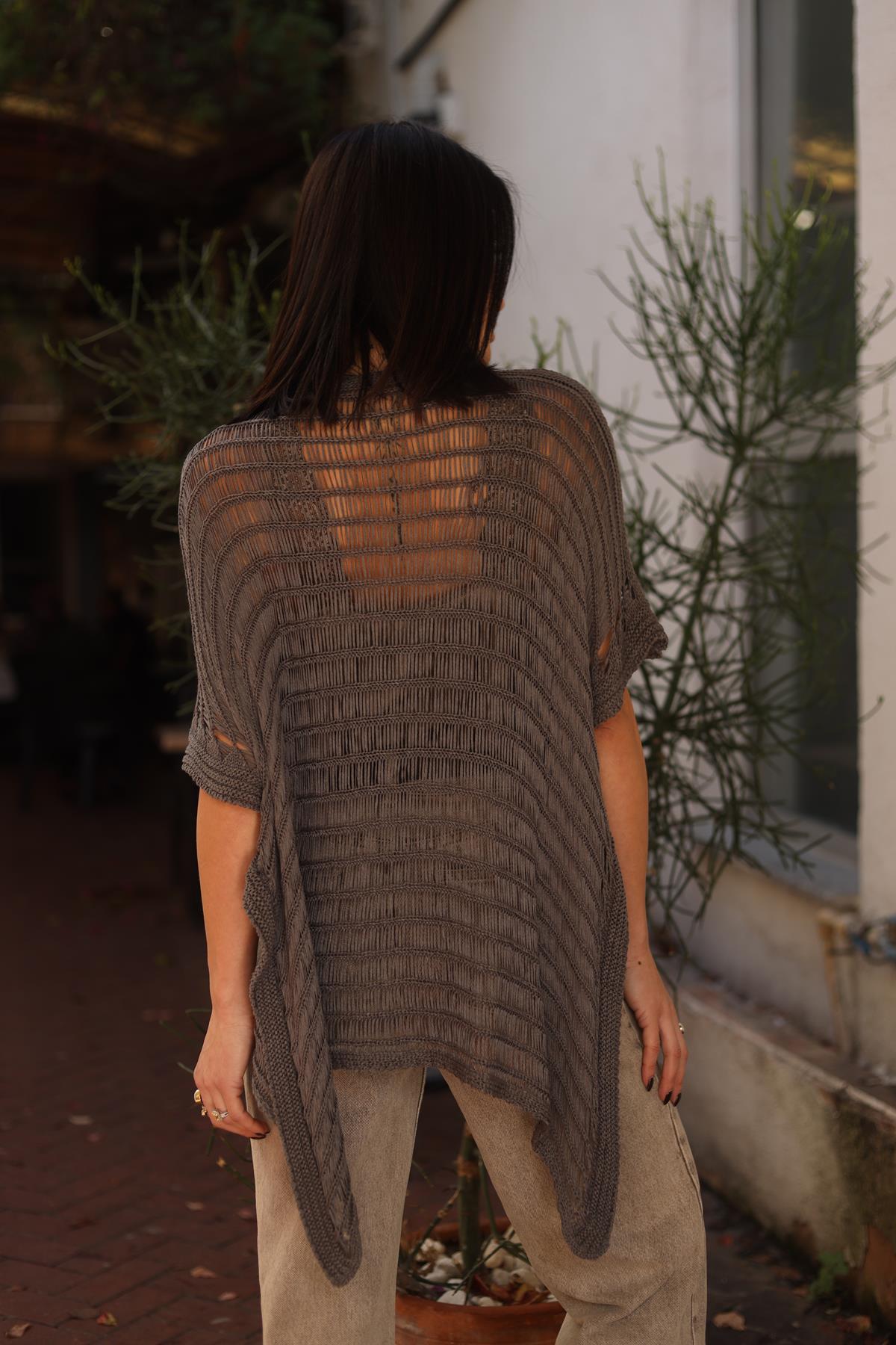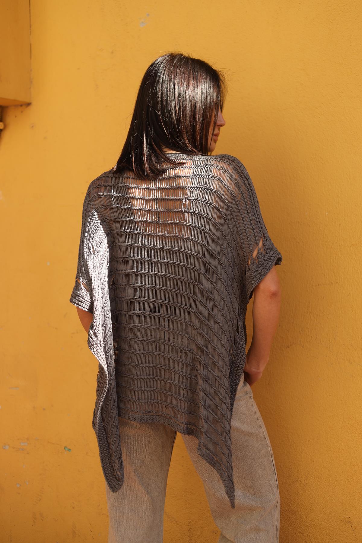 Antrasit Önü Çapraz File Triko Bluz