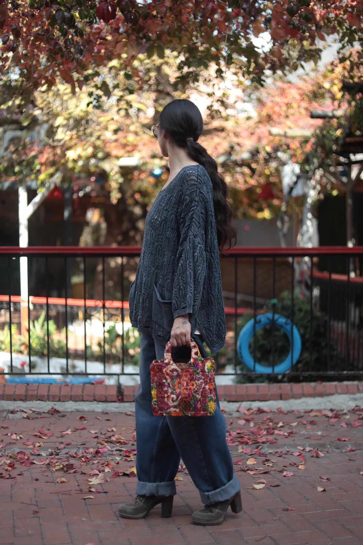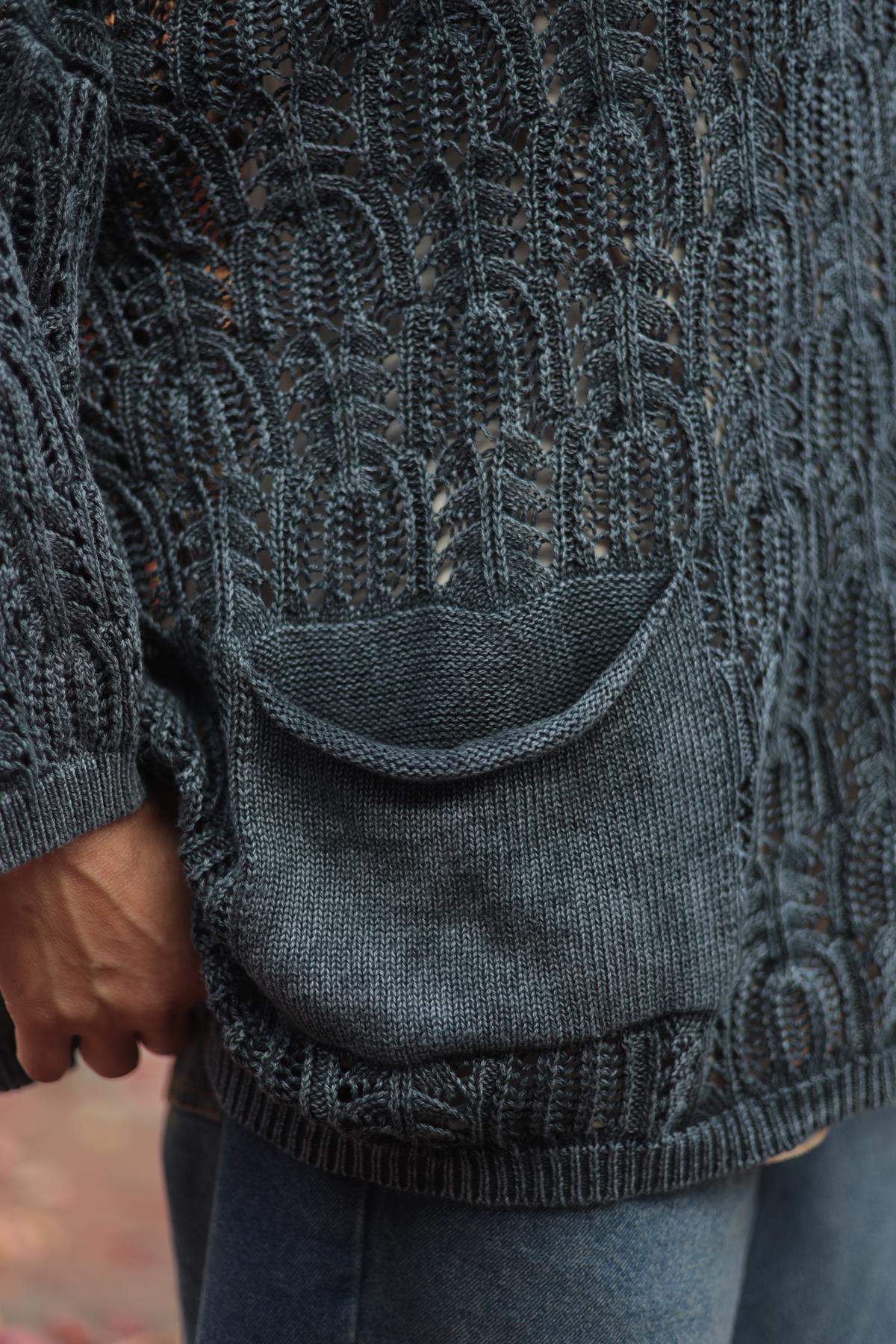 Antrasit Örgü Desenli Yıkama Triko Tunik