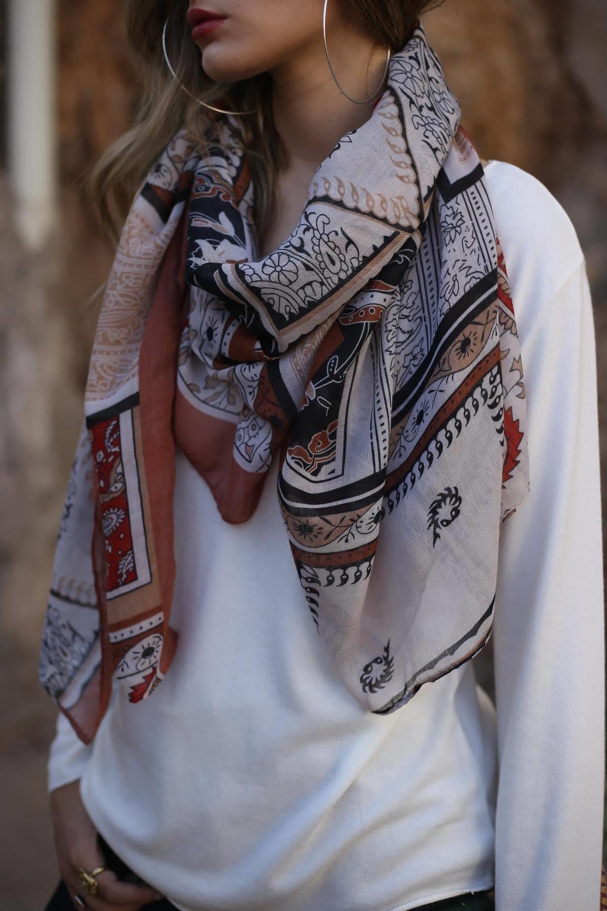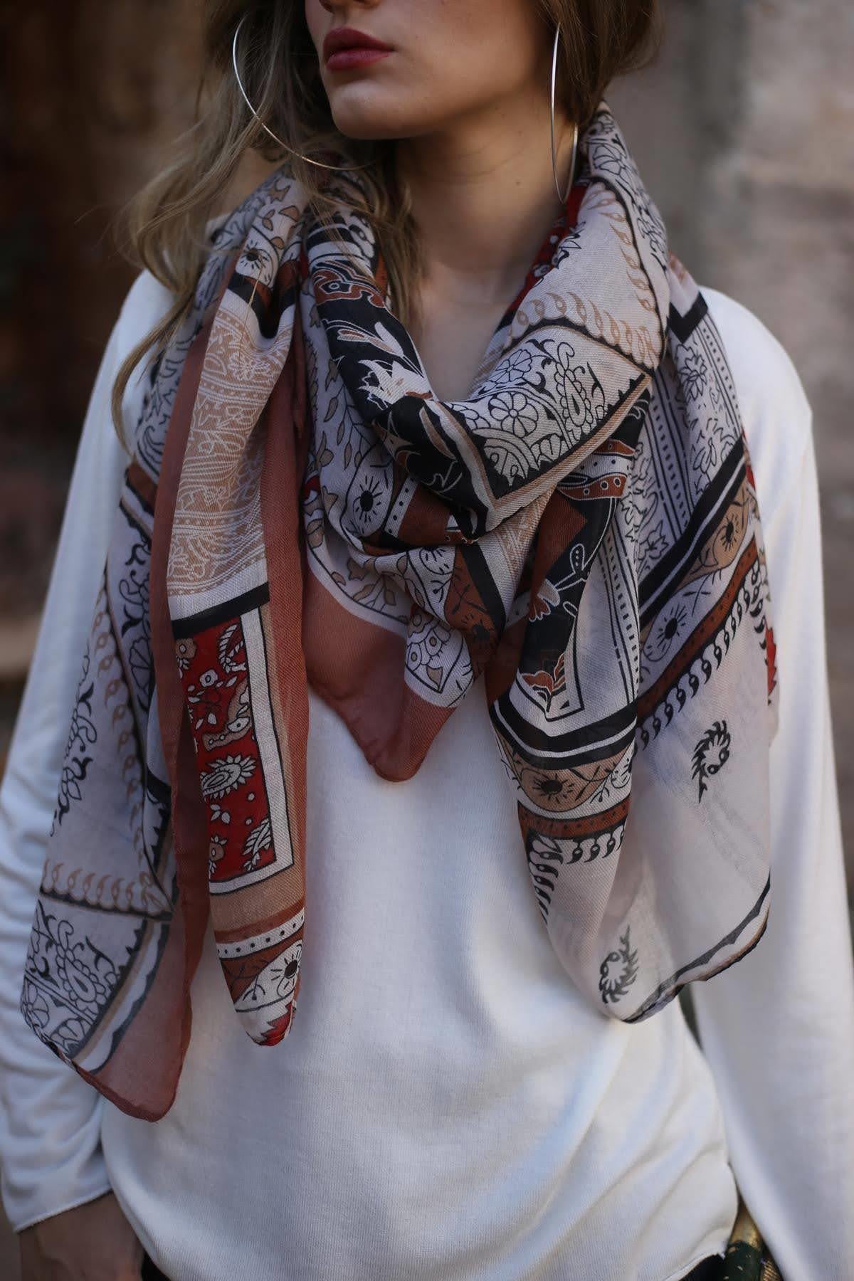 Bakır Rengi Desenli Otantik Şal