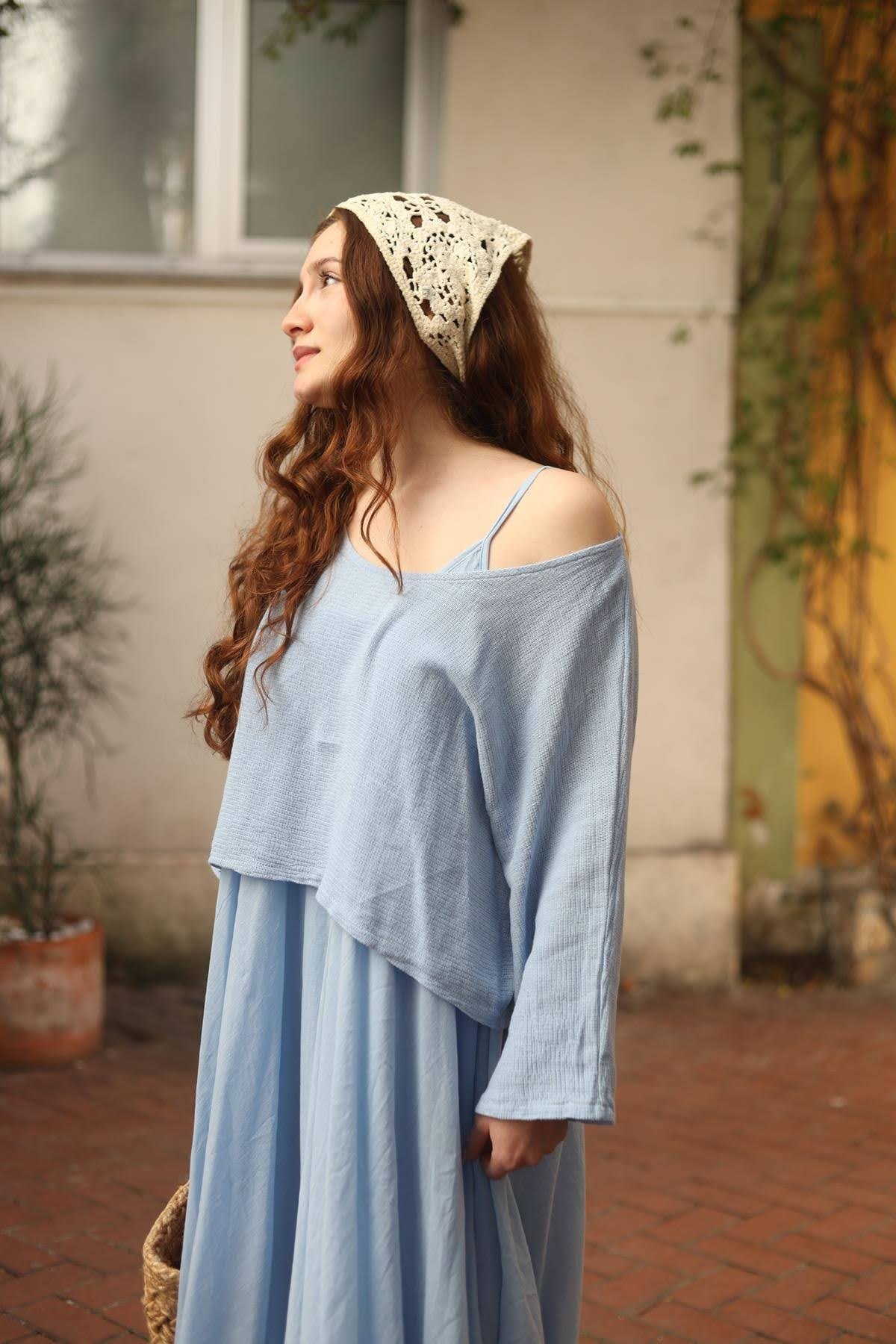 Bebek Mavisi Askılı Bluz Detaylı Elbise