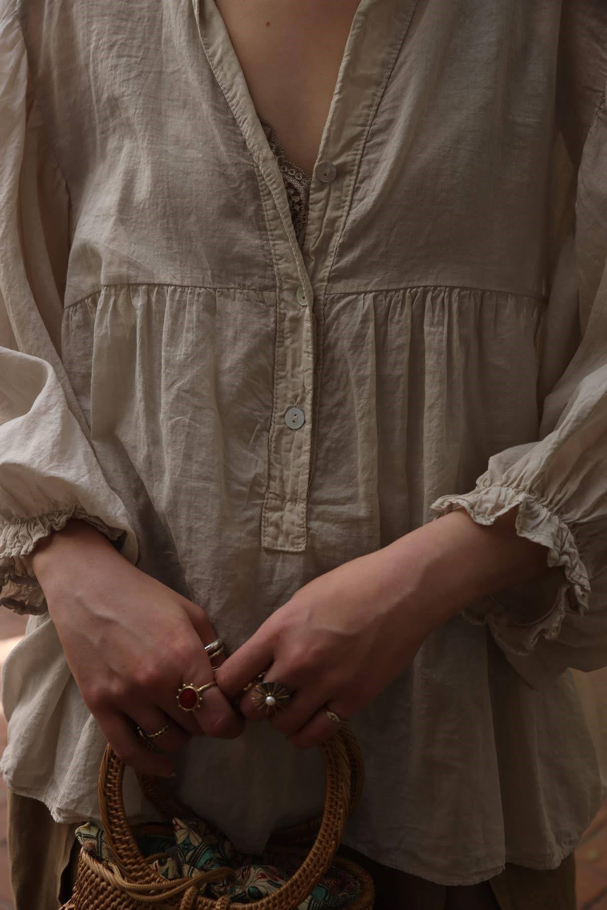 Bej Yakası Volanlı Kolları Lastikli Düğmeli Bluz (KB-SIT-058-PA-BEJ-STD)
