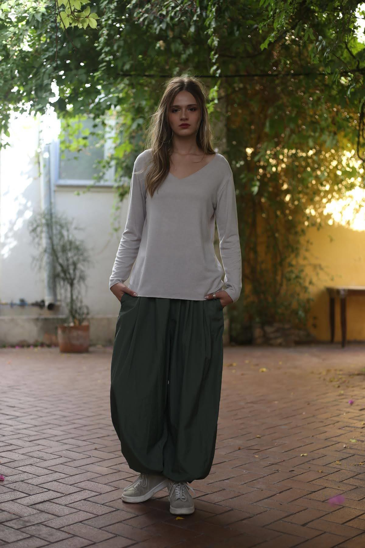 Bej Yumuşak Doku V Yaka Bluz (KB-PM-061-VI-BEJ-STD)