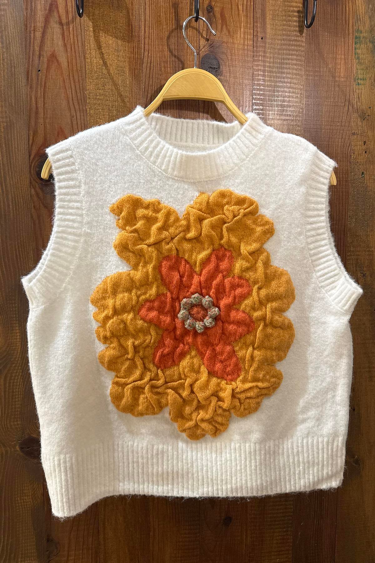 Beyaz Çiçek Kabartmalı Süveter (KB-PM-063-PO-BE1-STD)