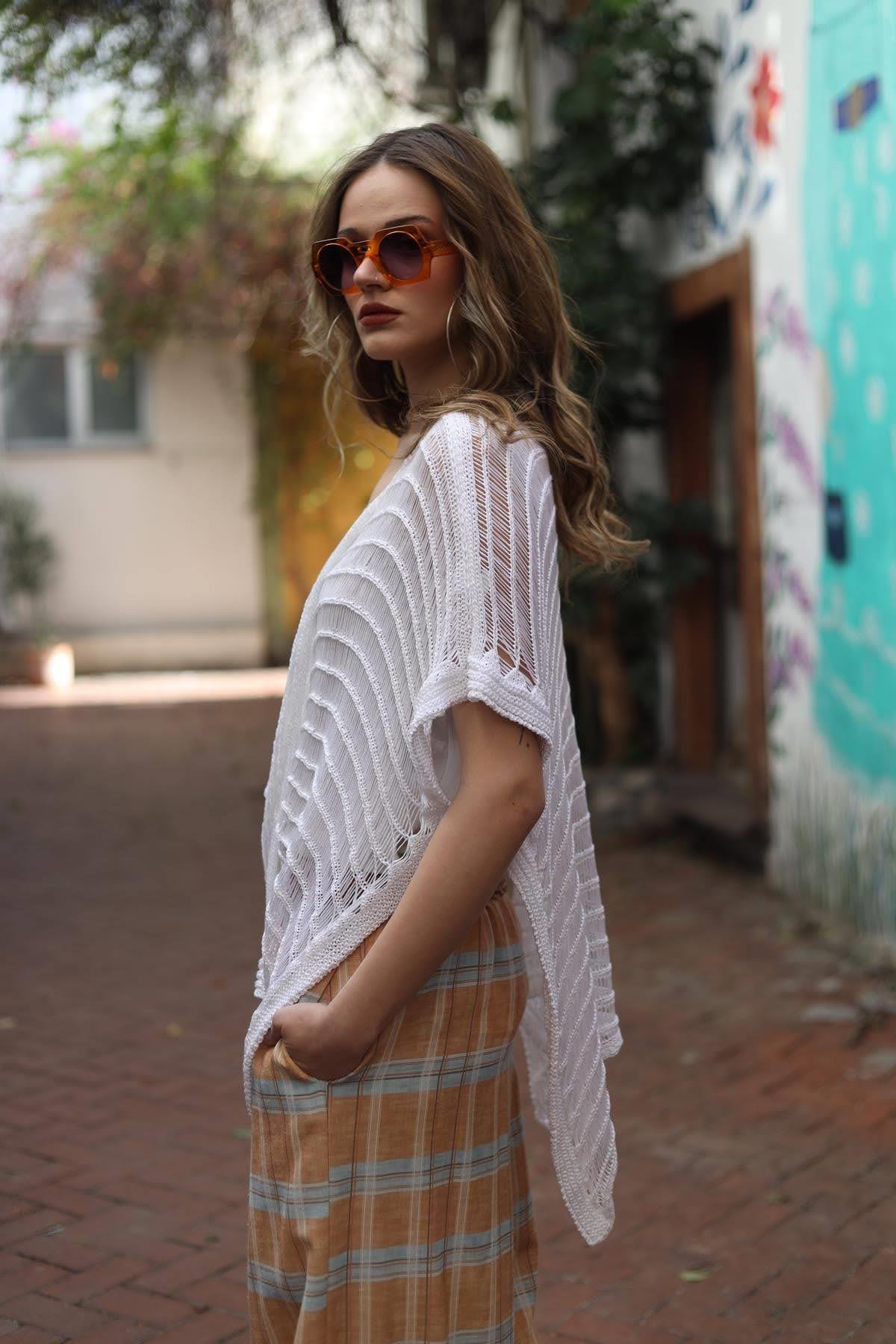 Beyaz Önü Çapraz File Triko Bluz (KB-ZA-002-PA-BE-STD)