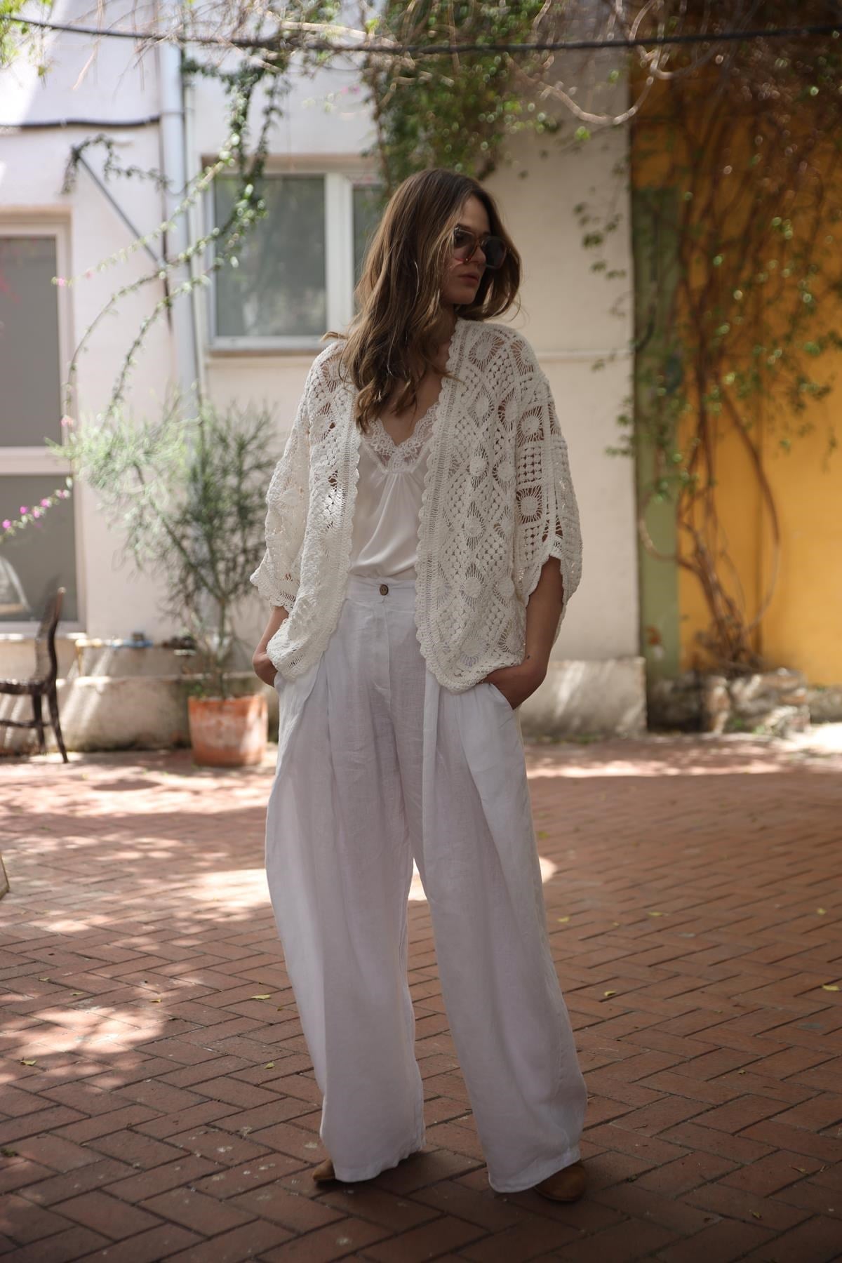 Beyaz Oval Kesim Dantel Hırka (KH-AS-008-PA-BE1-STD)