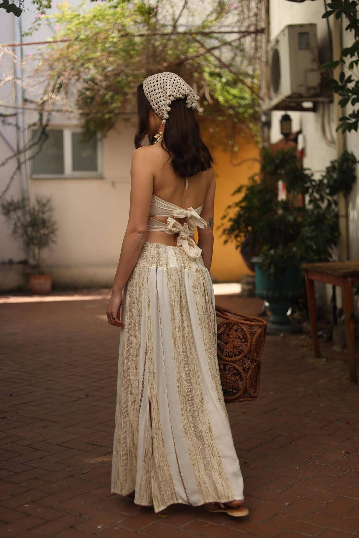 Beyaz Payet Detaylı Yırtmaçlı Otantik Etek