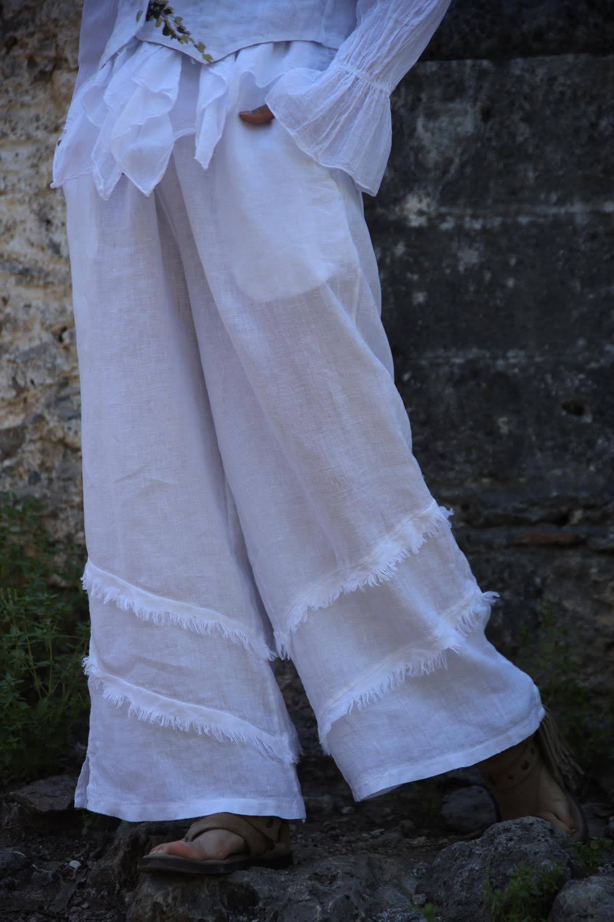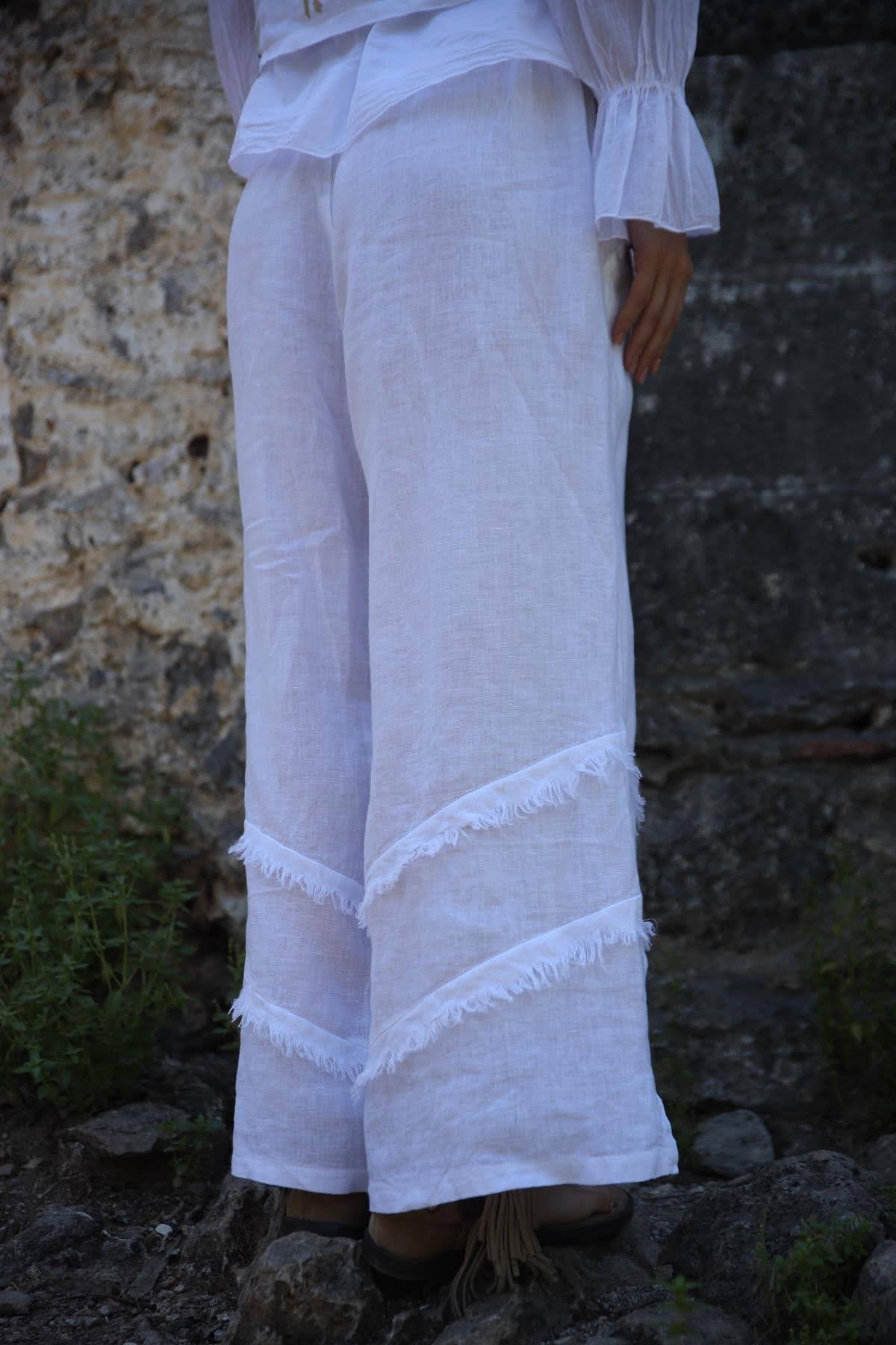 Beyaz Püskül Detaylı Keten Pantolon (KP-SIT-022-KTN-BE-STD)