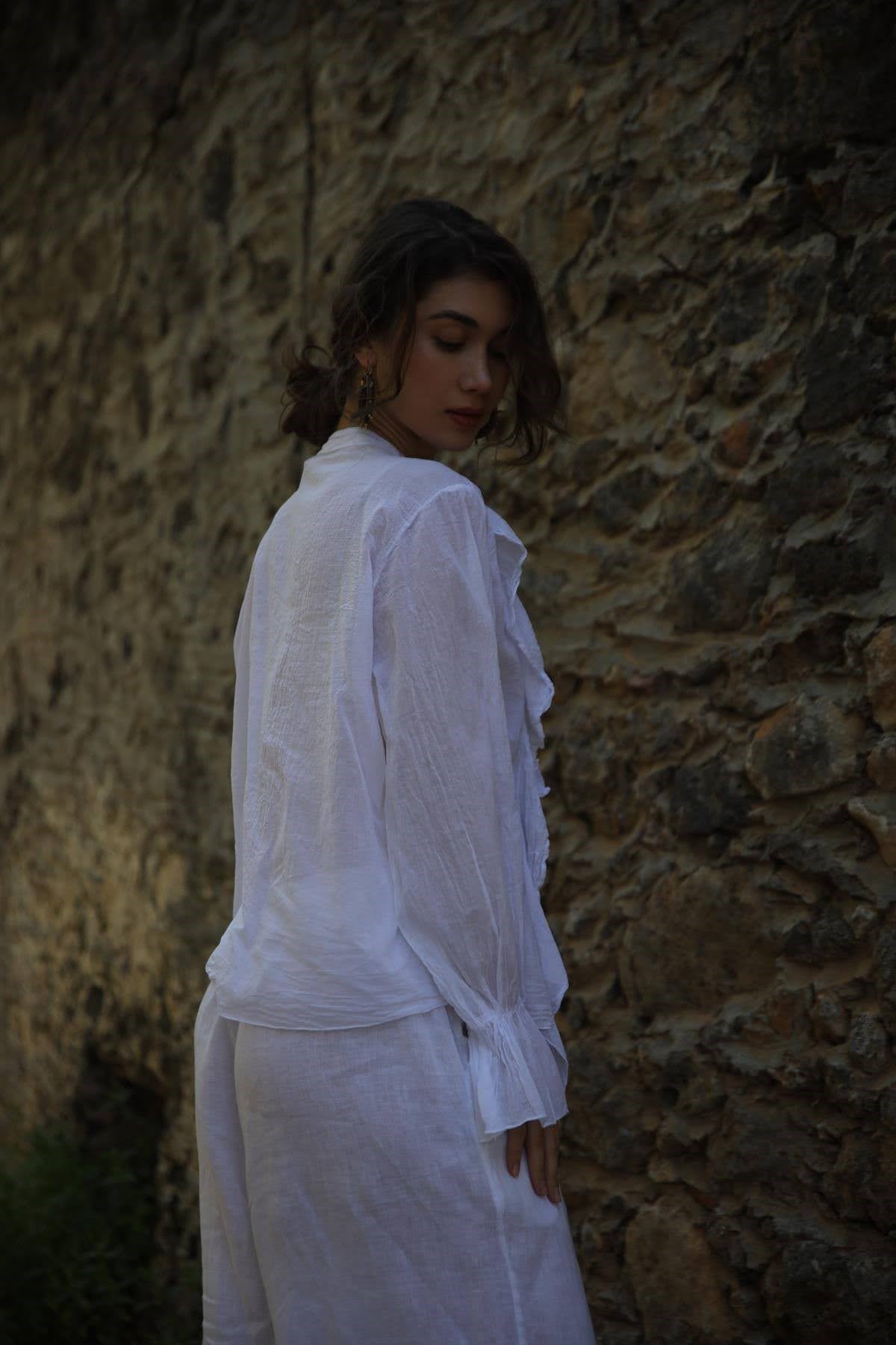 Beyaz Volanlı Hakim Yaka Gömlek