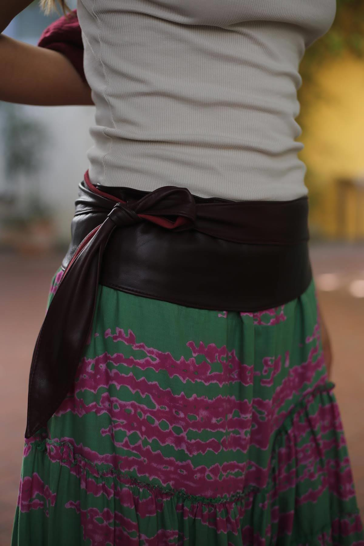 Bordo Bağlamalı Deri Kemer