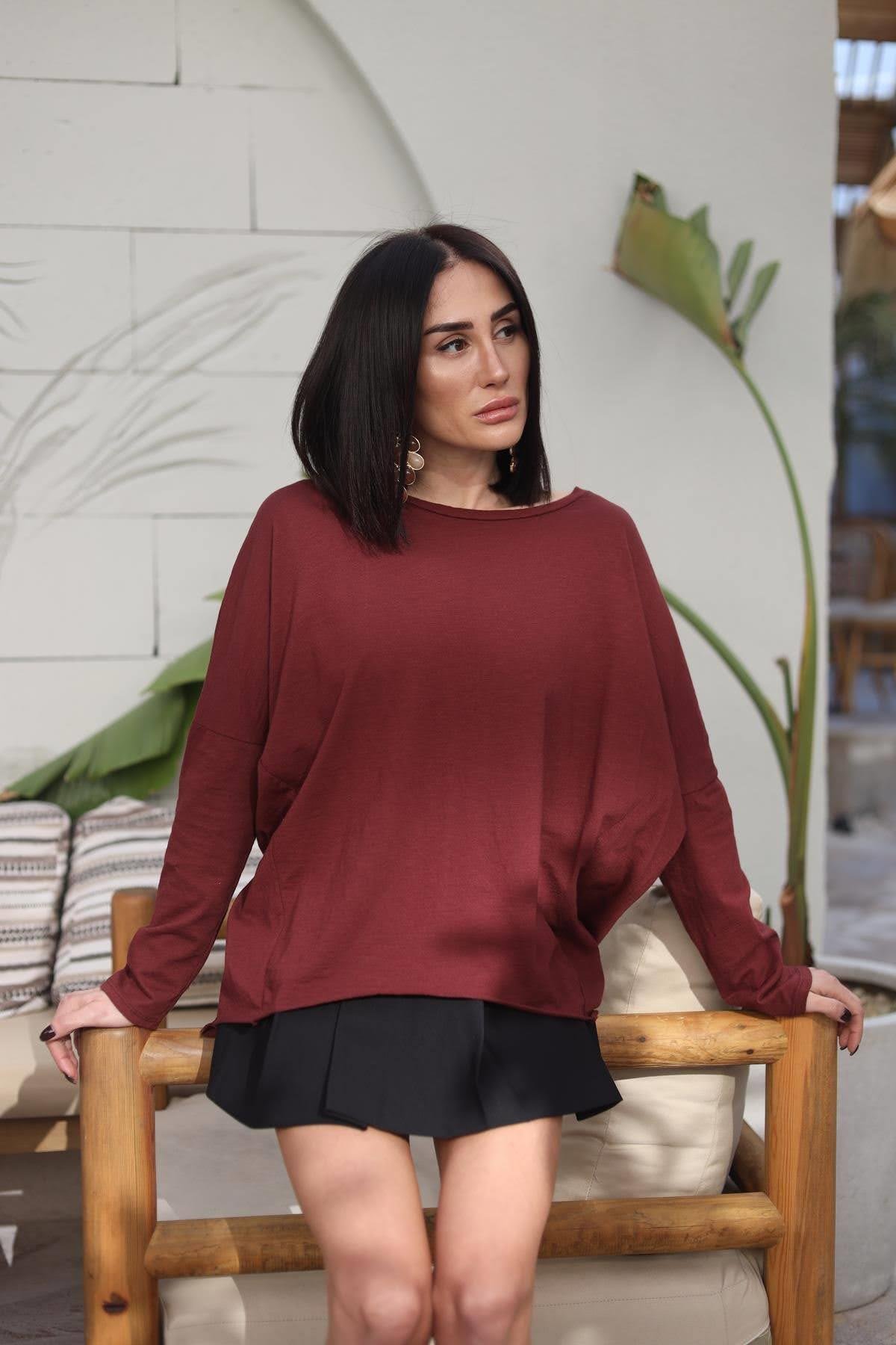 Bordo Dikiş Detaylı Salaş Penye Bluz (KB-SIT-004-PA-BO-STD)