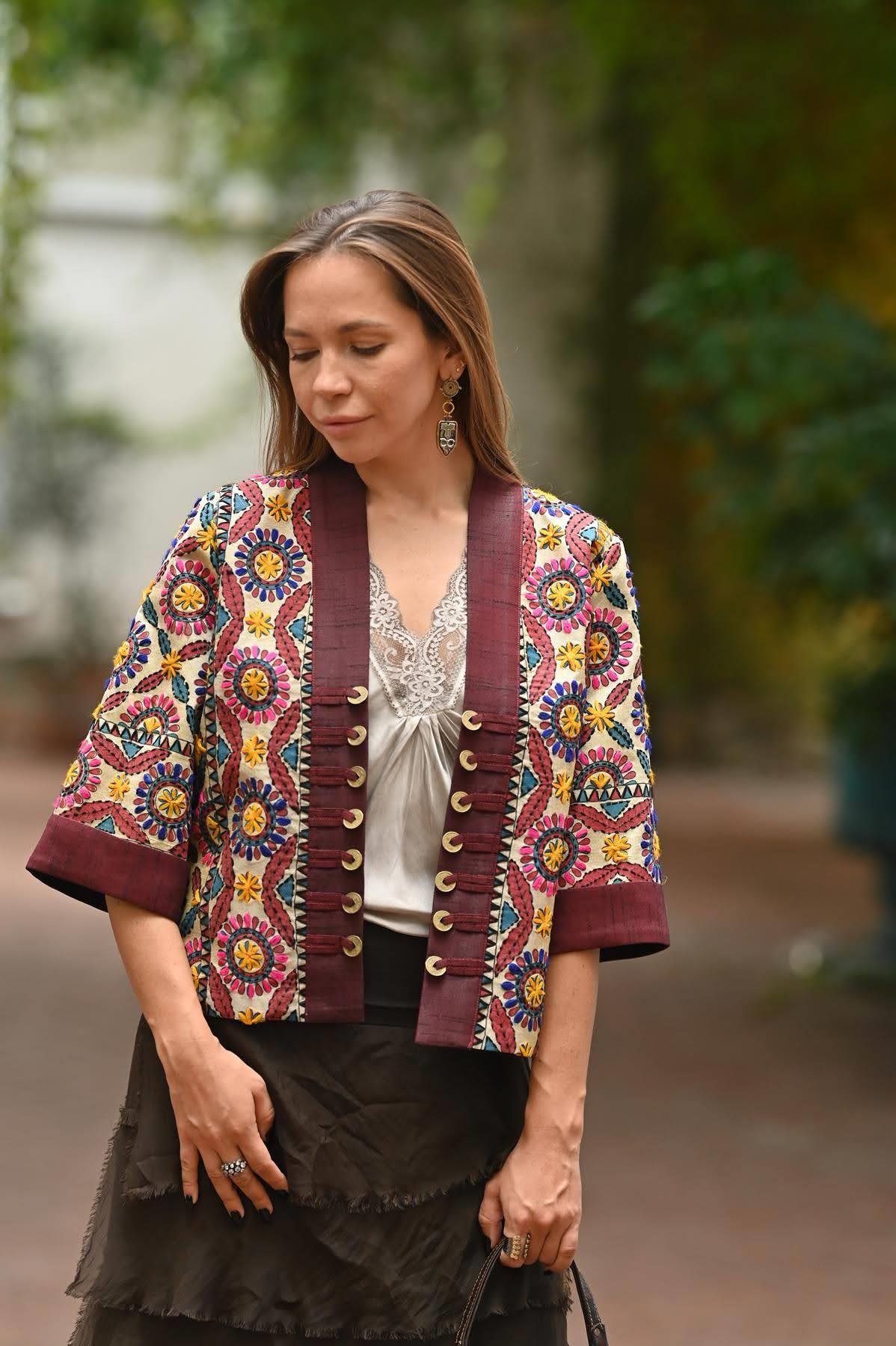 Bordo Otantik İşlemeli İpek Ceket (KC-TS-001-IP-BO-STD)