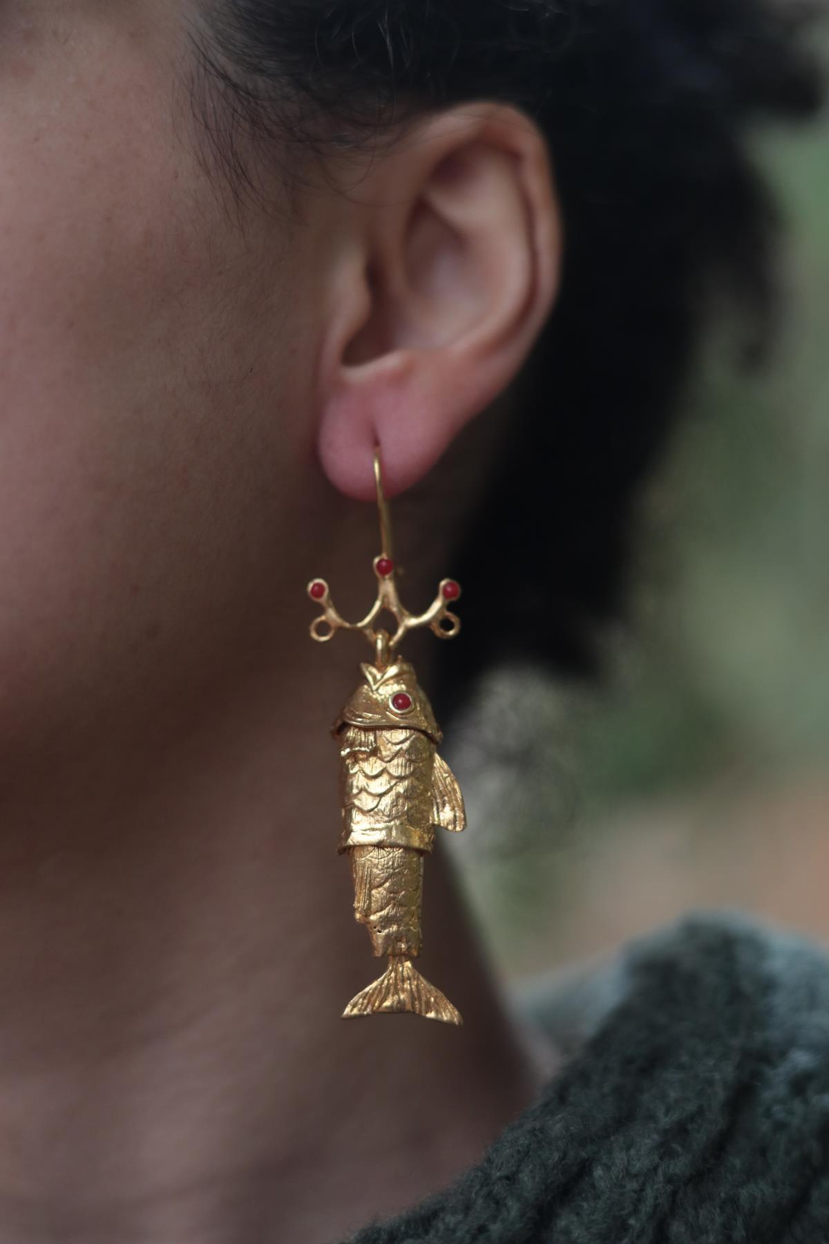 Bronz Altın Suyu Kaplama Balık Küpe
