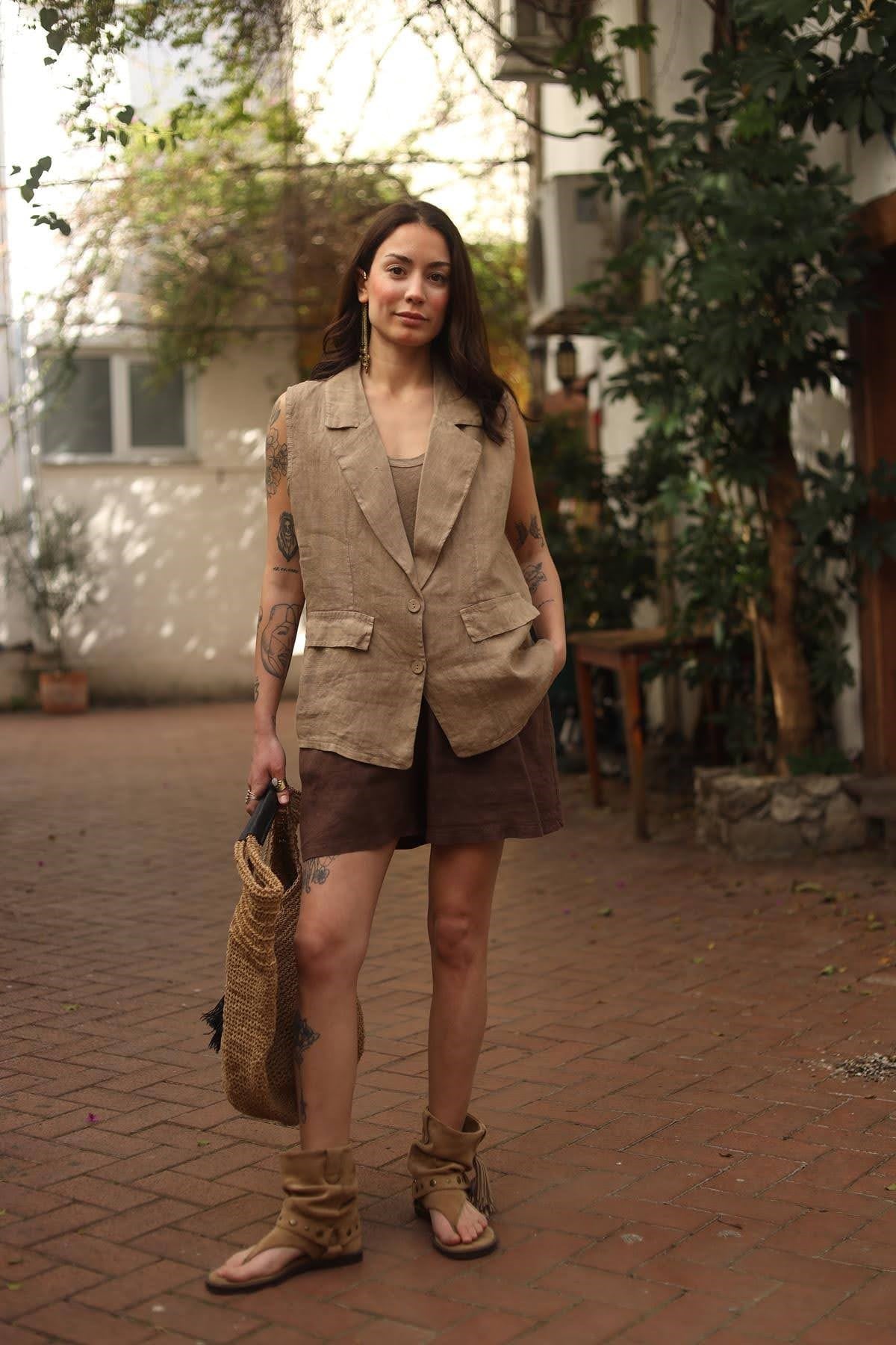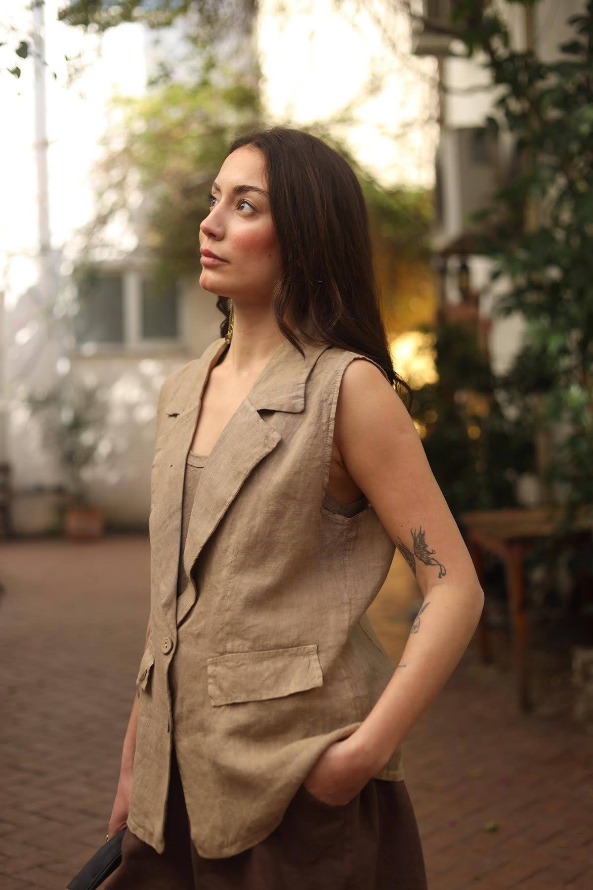 Camel Rengi Blazer Yaka Keten Yelek (KY-SIT-004-KTN-CA-STD)