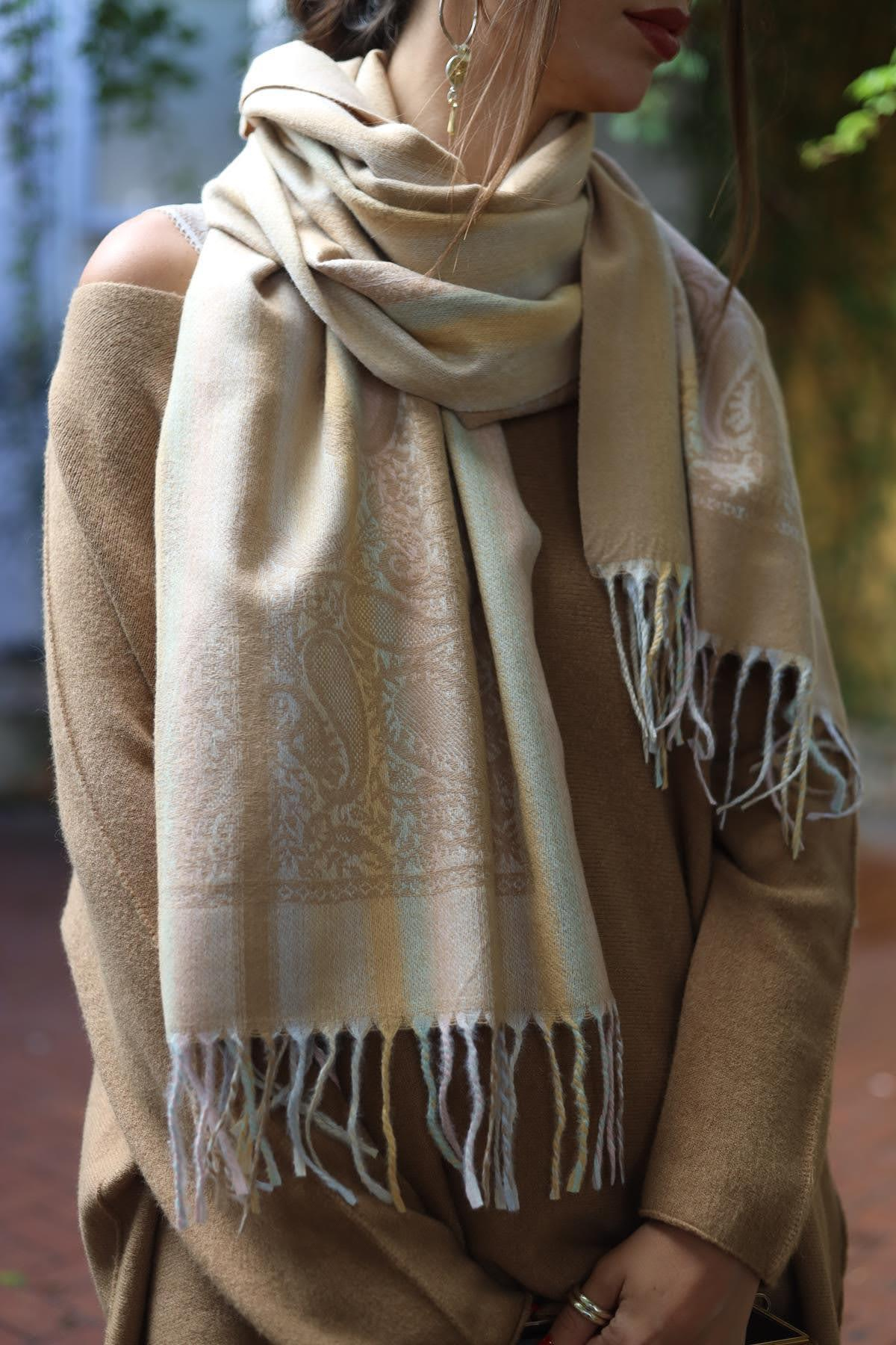 Camel Rengi Desenli Püsküllü Kaşmir Şal (ASL-FAL-004-PA-CA-STD)