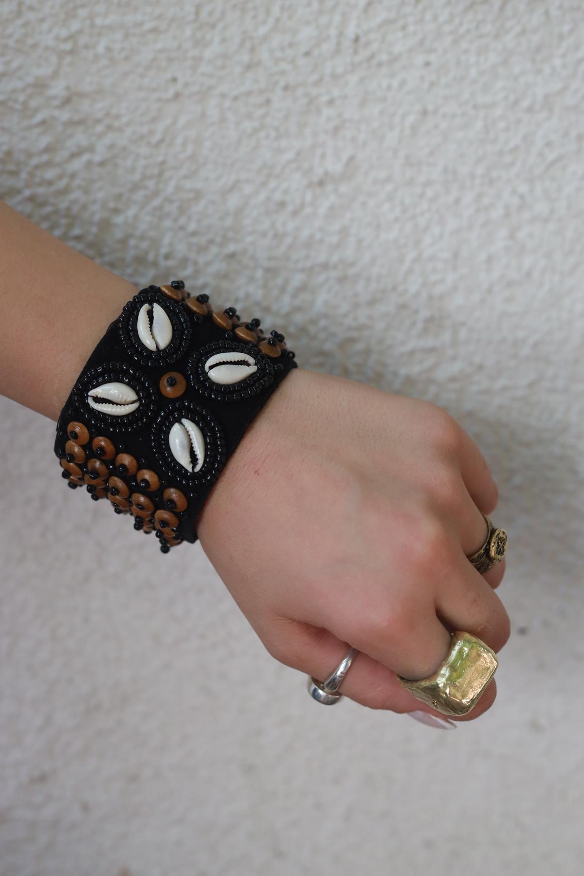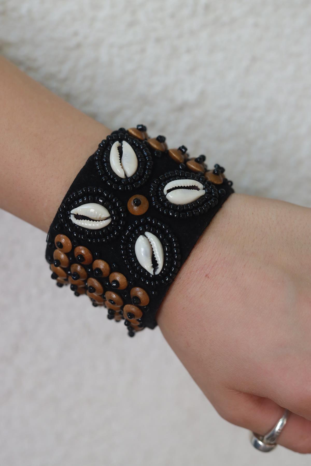 Deniz Kabuğu Detaylı Ahşap Bileklik