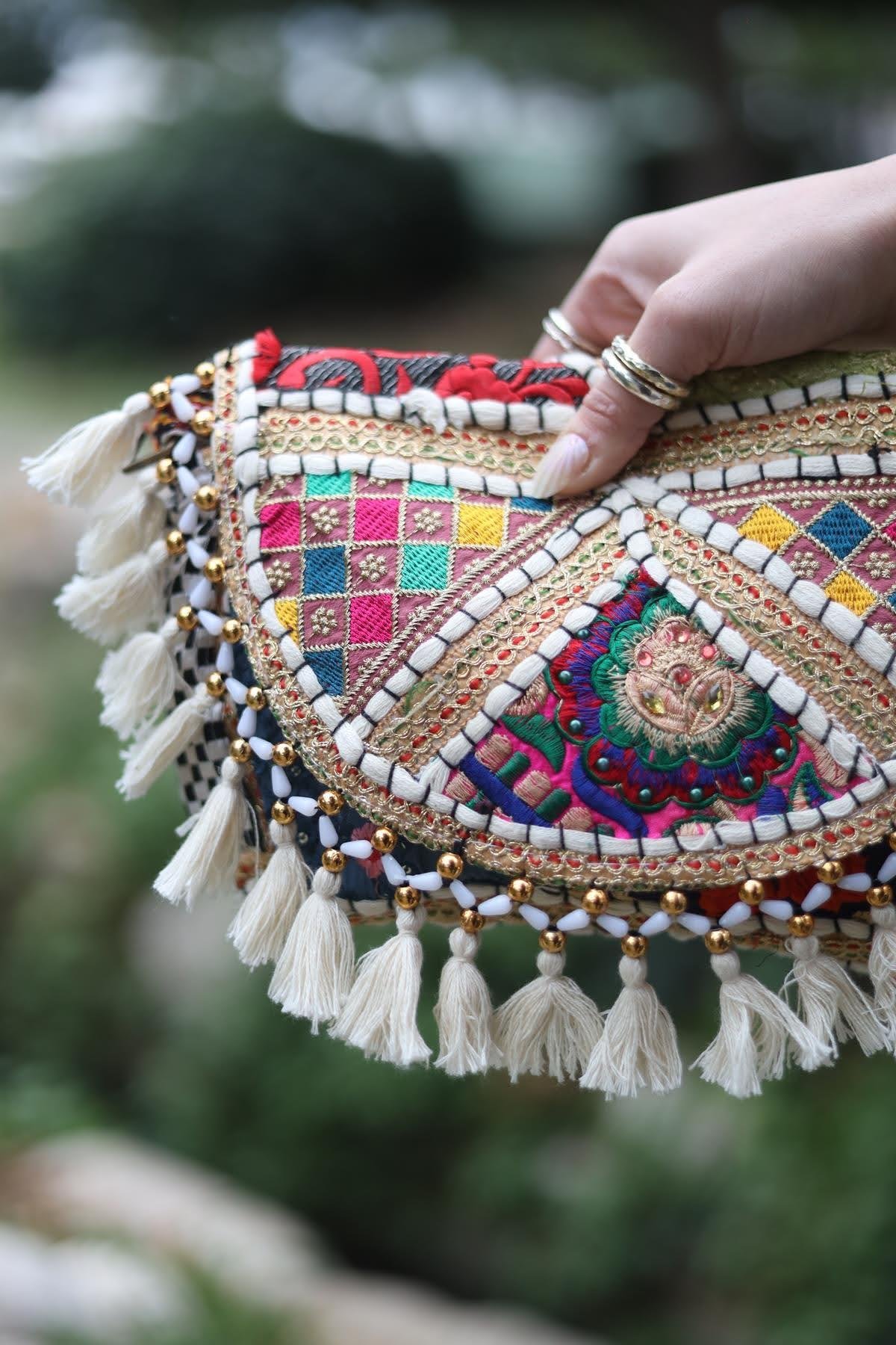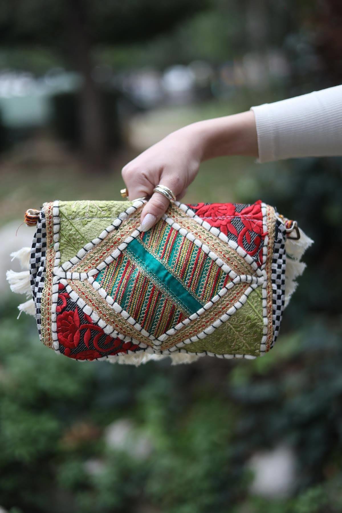 Ekru Boncuk İşlemeli Zarf Çanta (ACNT-MOT-003-PA-EK8-STD)