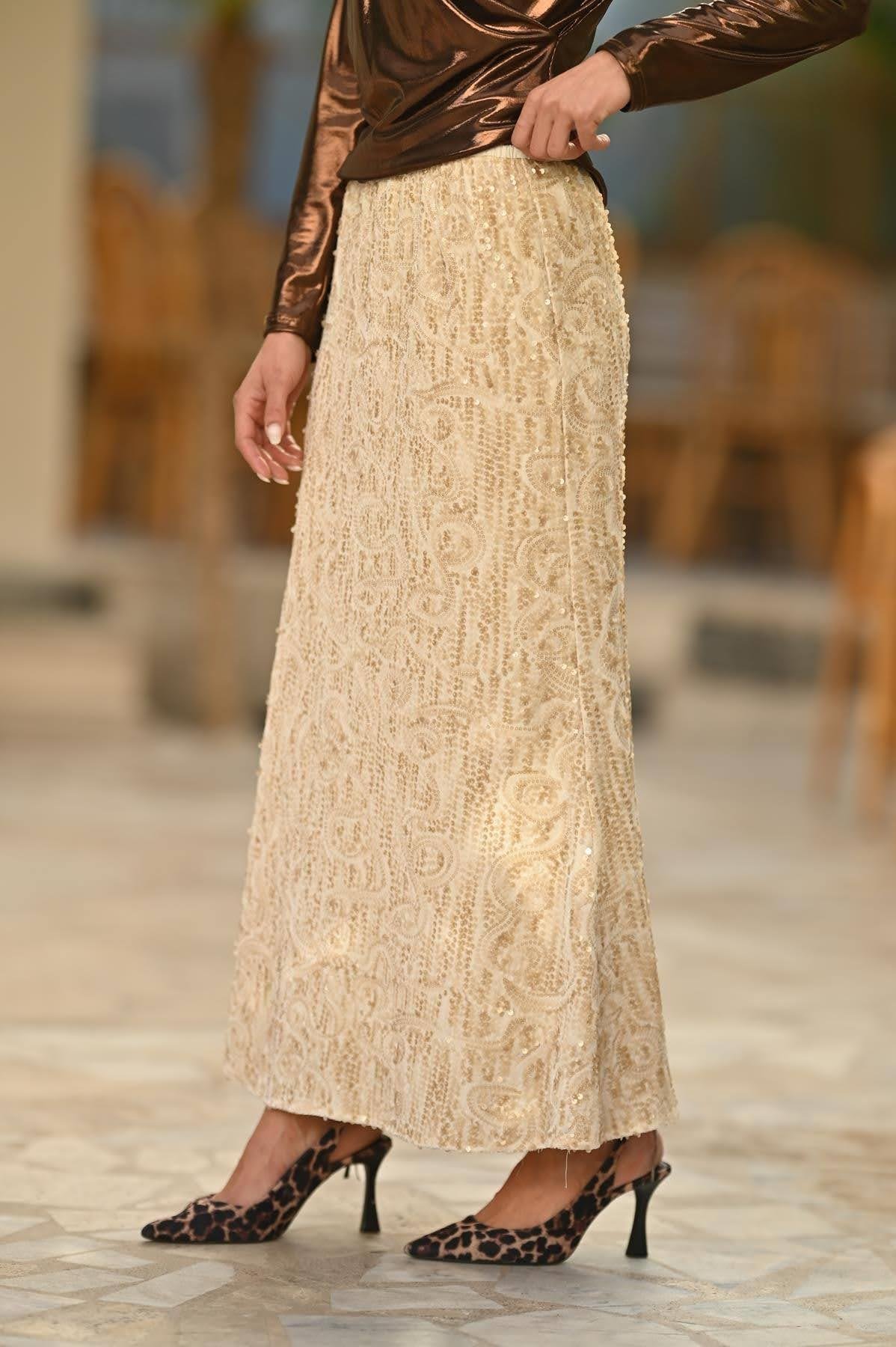 Ekru Desenli Payet Etek (KET-AS-013-PO-EK-STD)