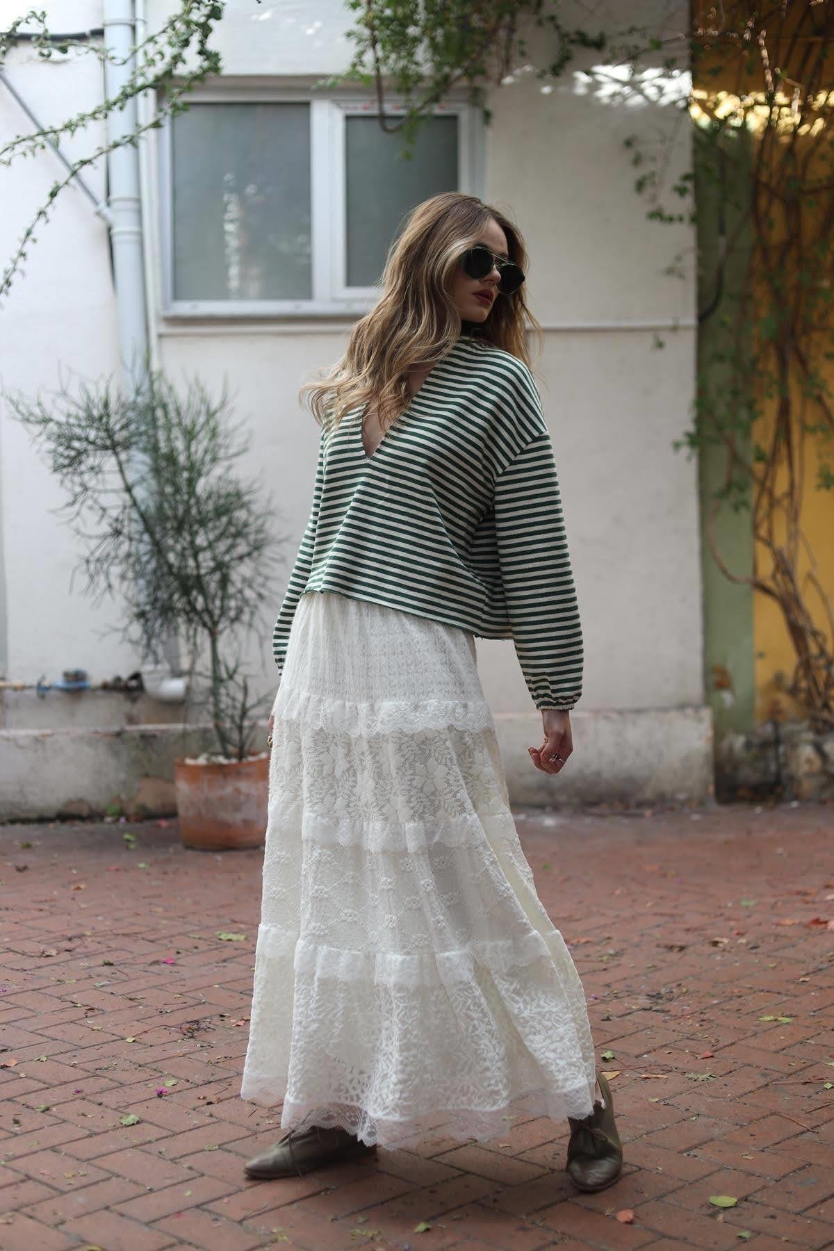 Ekru Kat Kat Desenli Dantel Etek (KET-AS-014-PO-EK-STD)