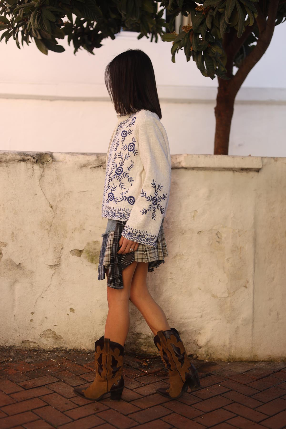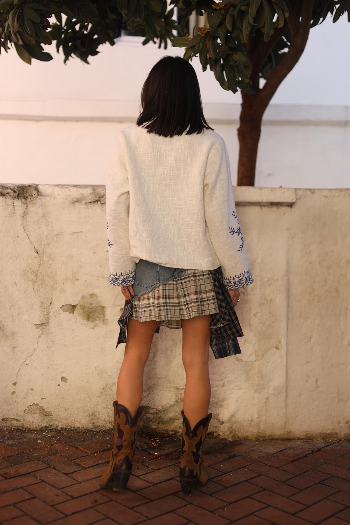 Ekru Nakışlı Etamin Ceket