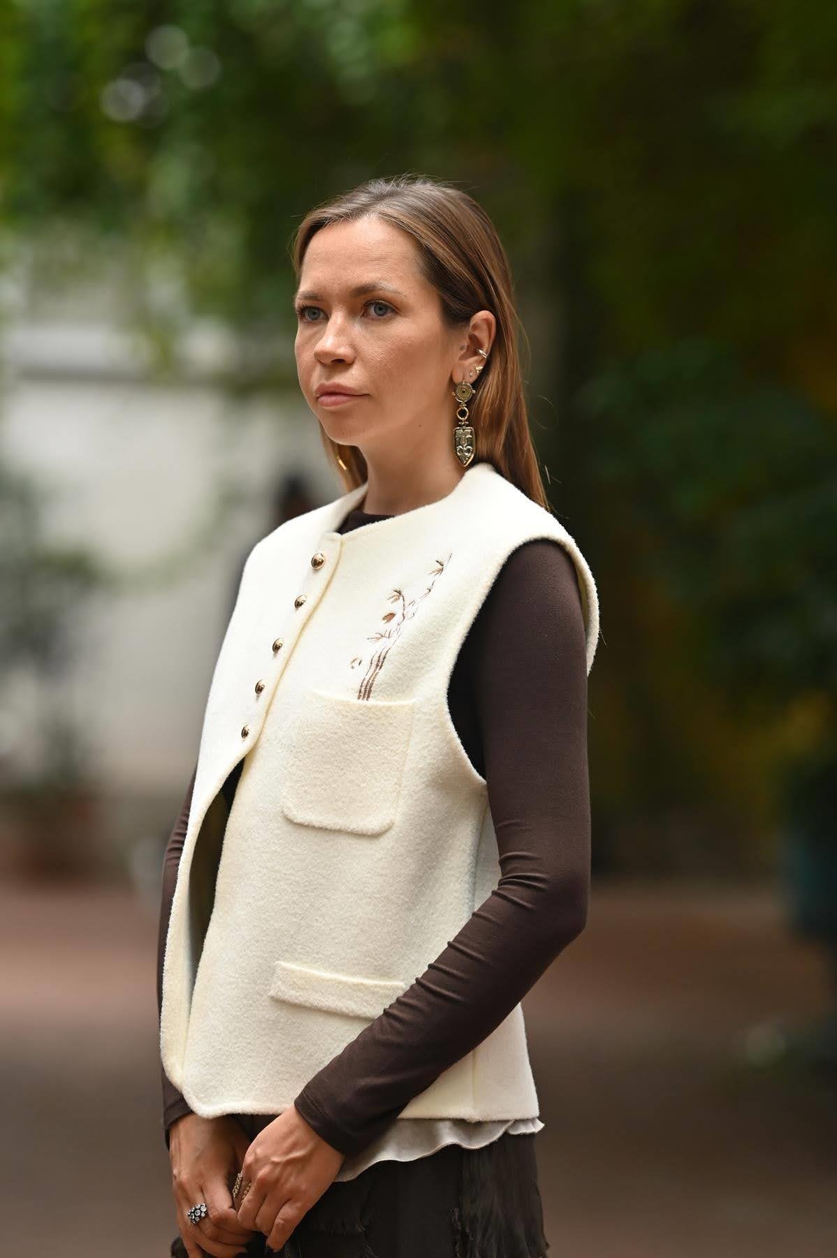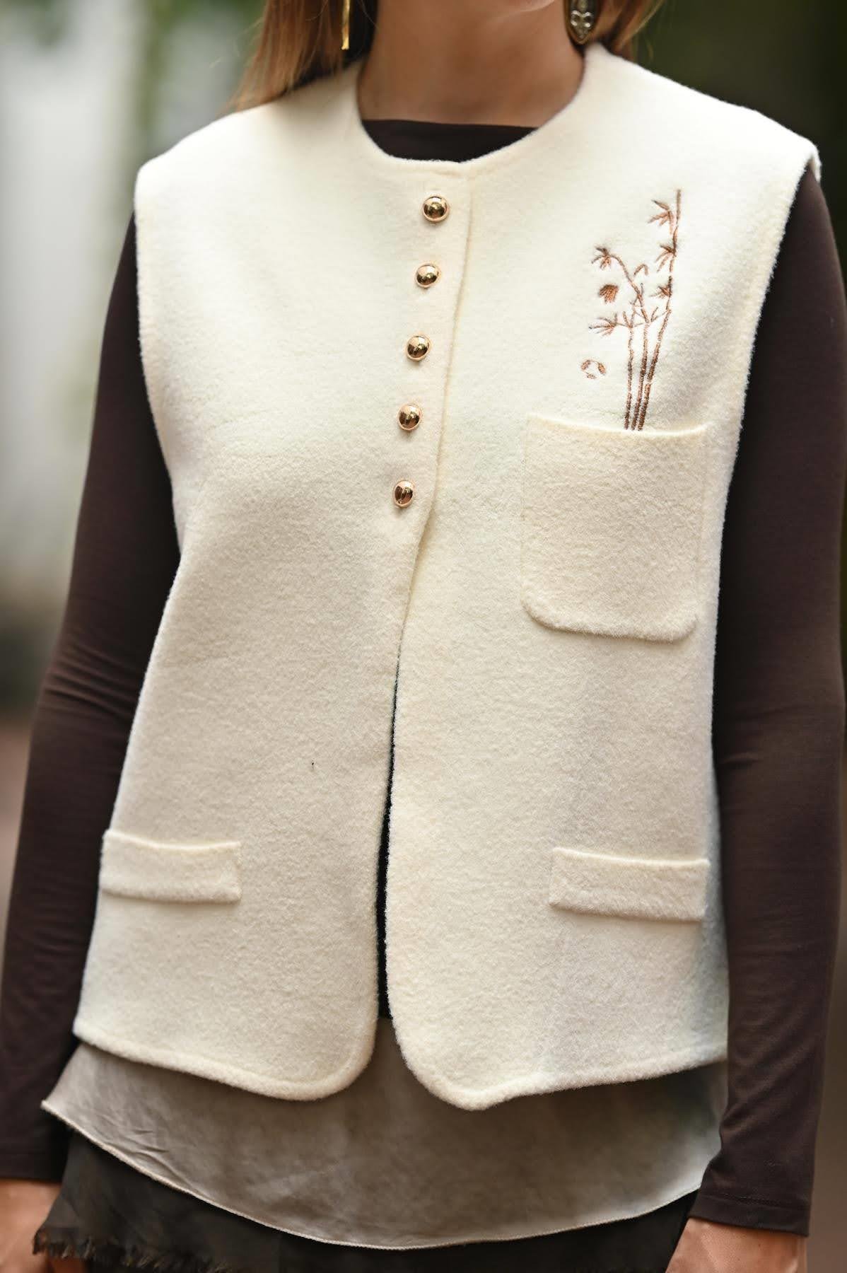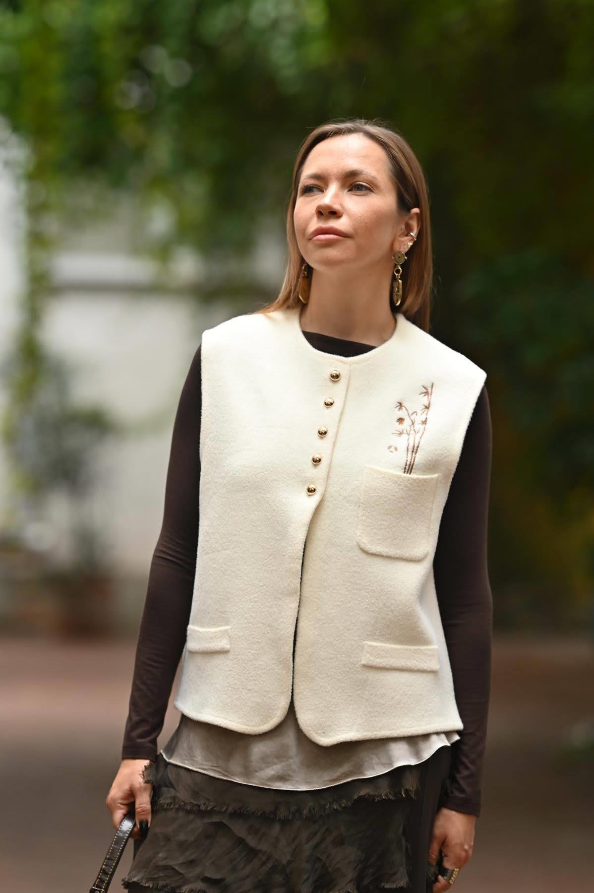 Ekru Yumuşak Doku Nakışlı Yelek (KY-AS-006-PO-EK-STD)