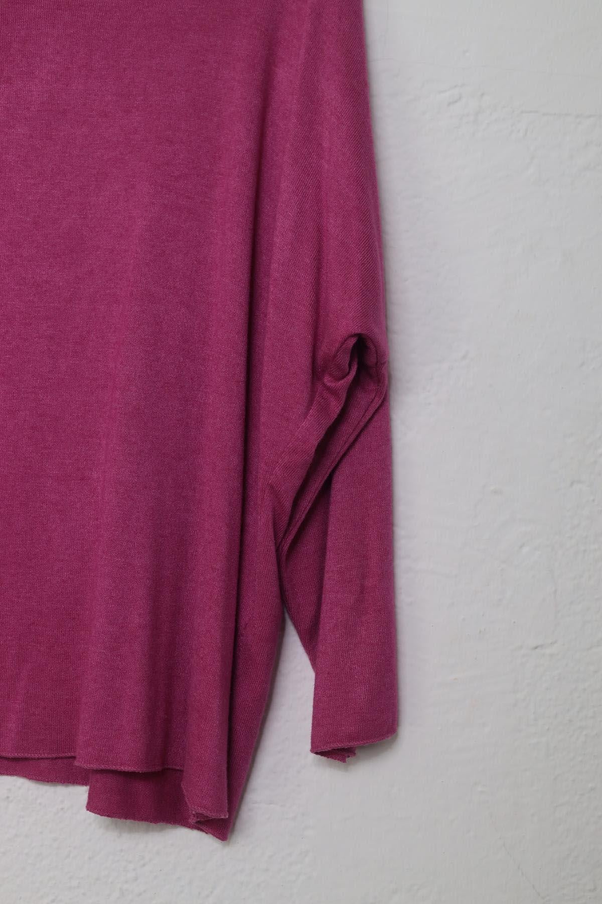 Fuşya V Yaka Yumuşak Doku Angora Bluz