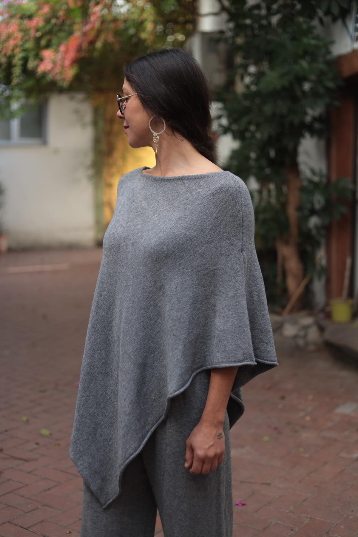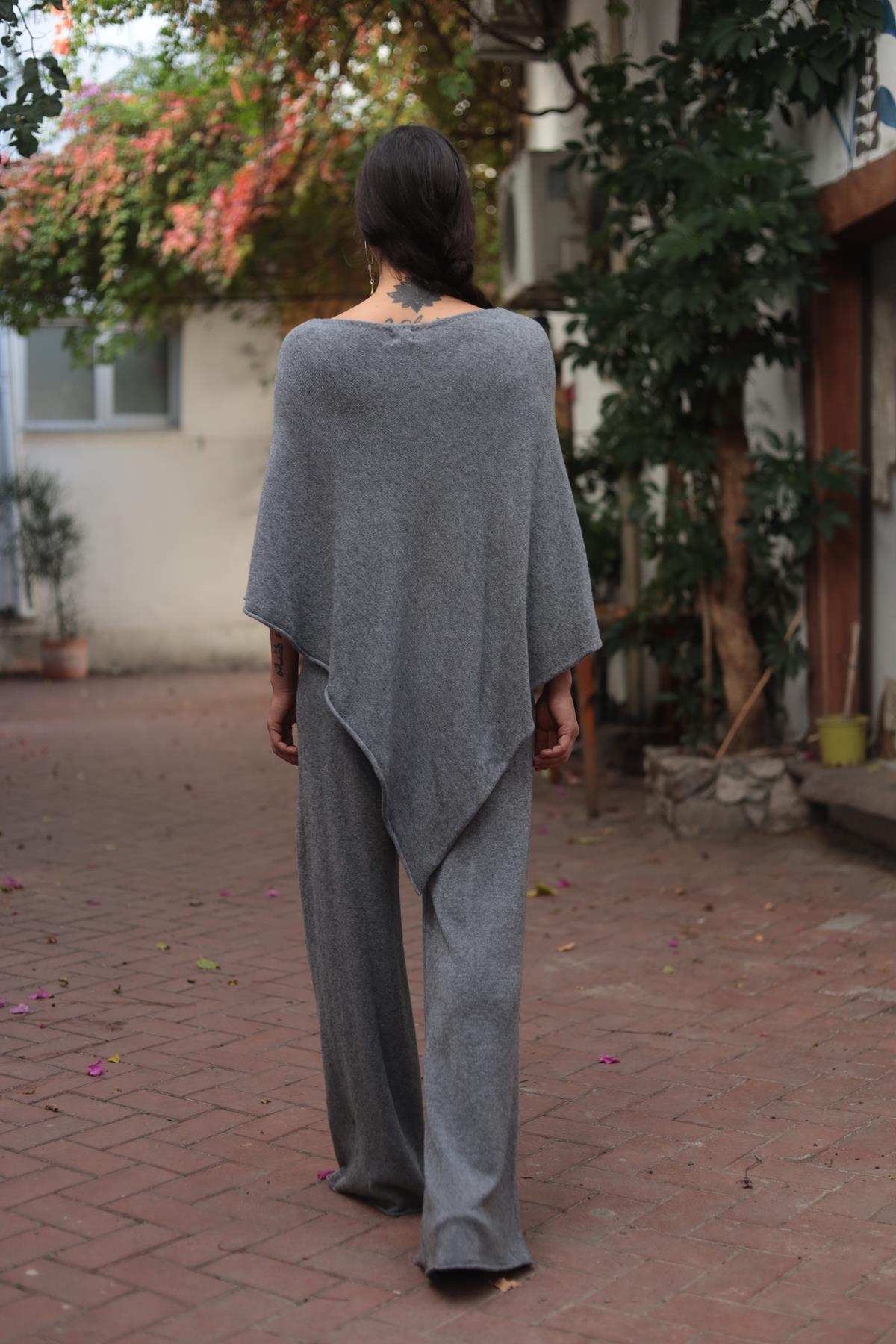 Gri Yumuşak Doku Panço ve Pantolon Takım