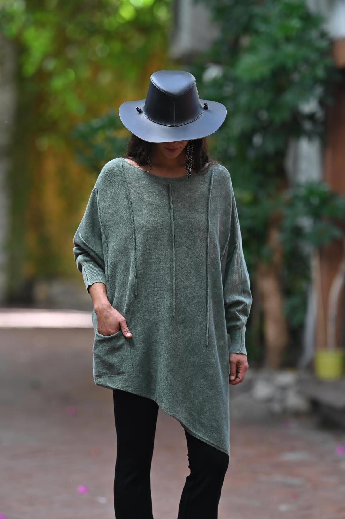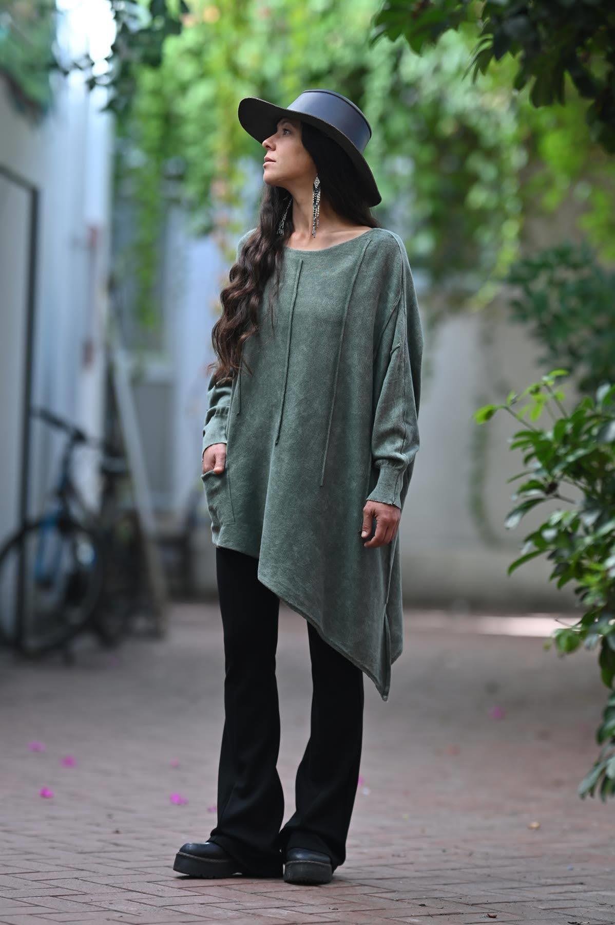 Haki Asimetrik Kesim Yıkamalı Tunik (KTNK-LAM-017-AK-HA-STD)