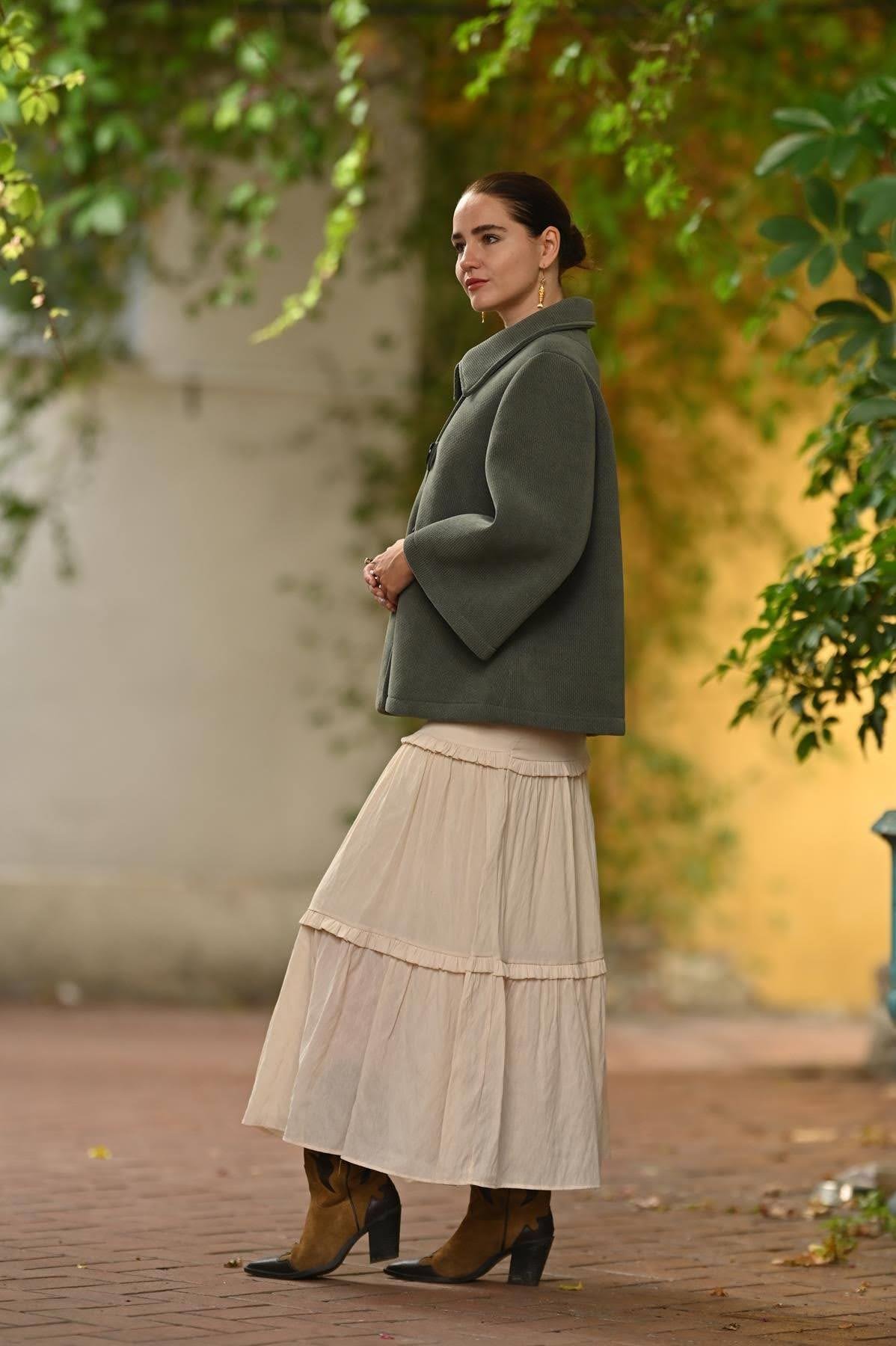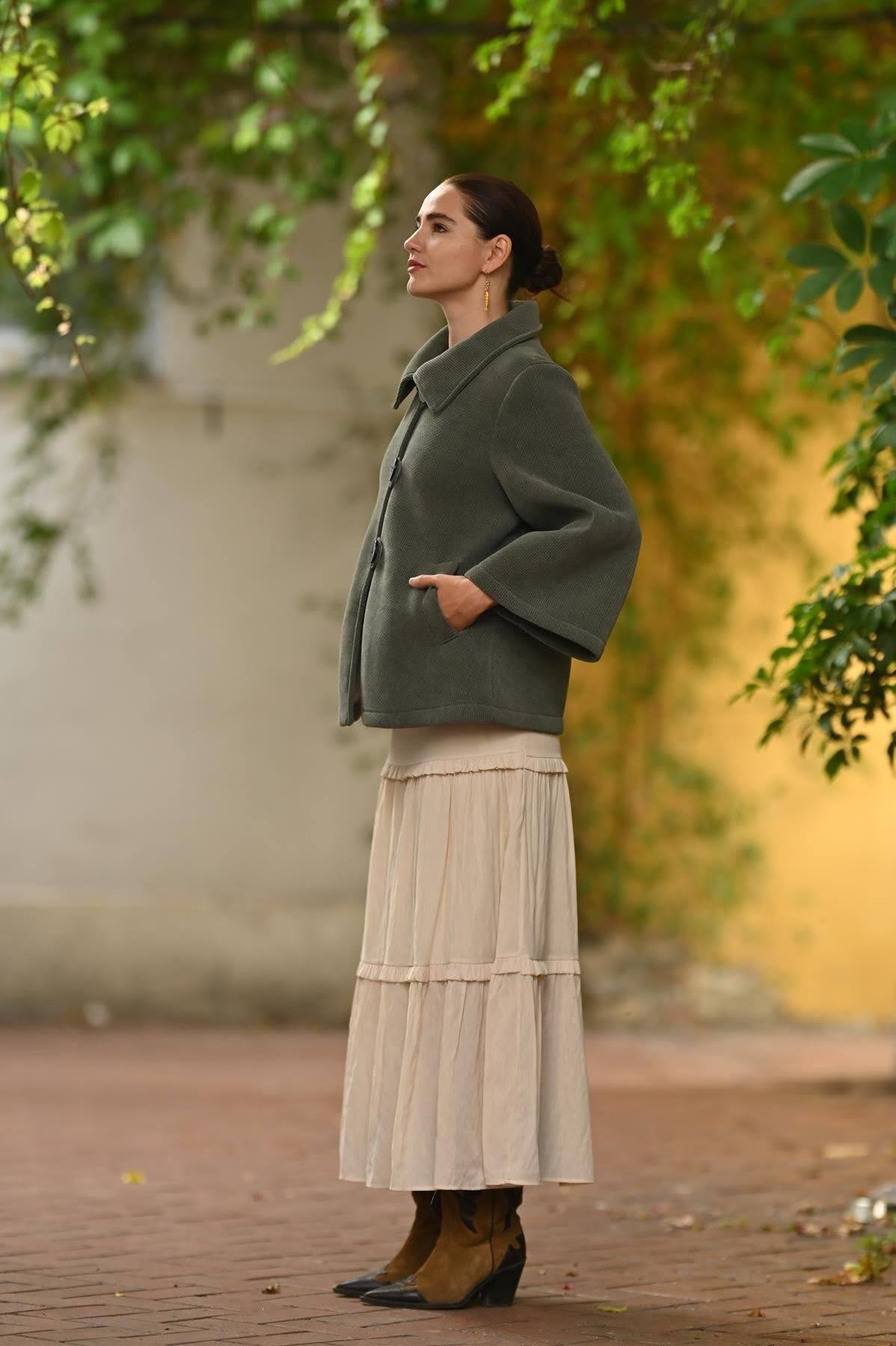 Haki Büyük Düğmeli Kolları Geniş Ceket
