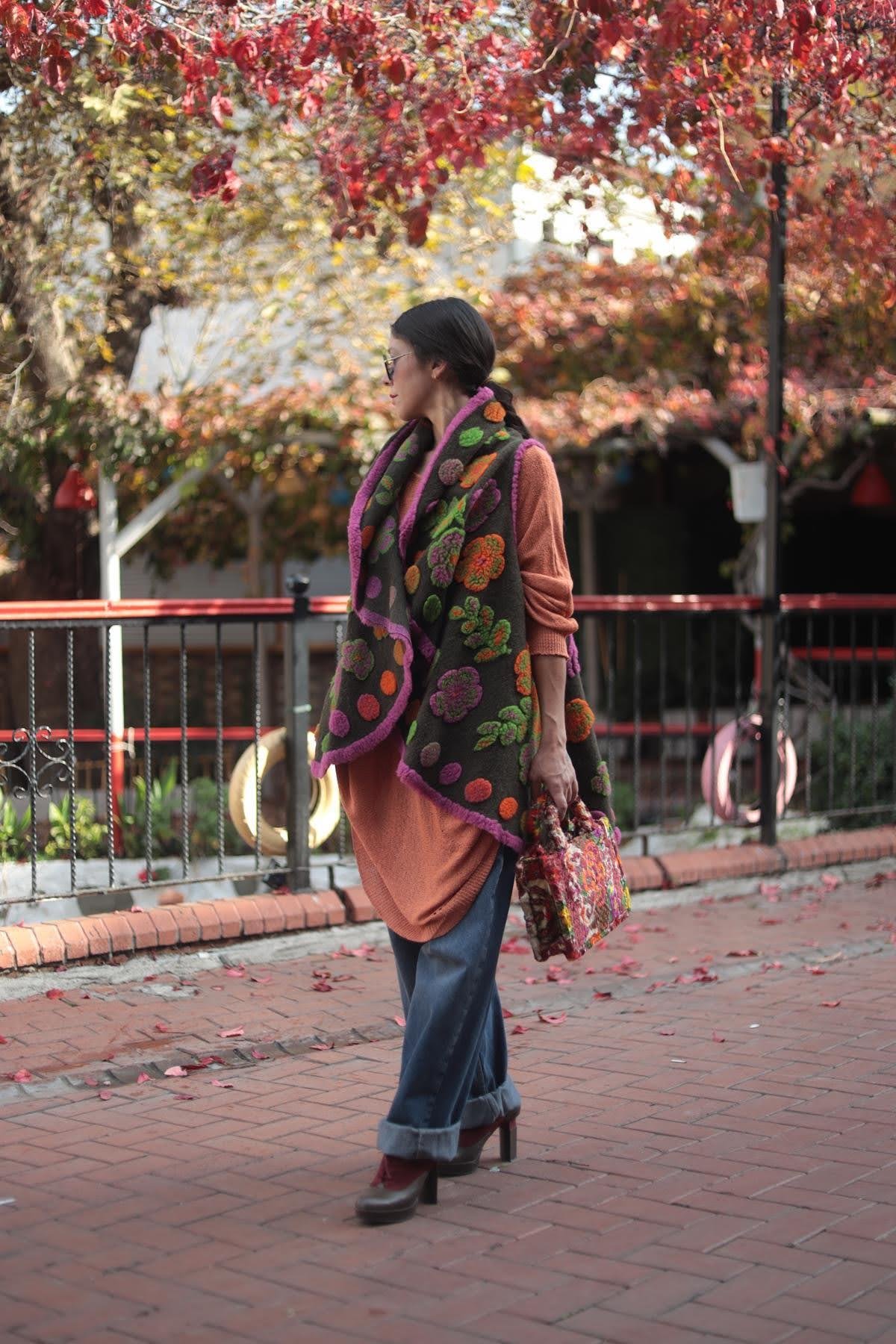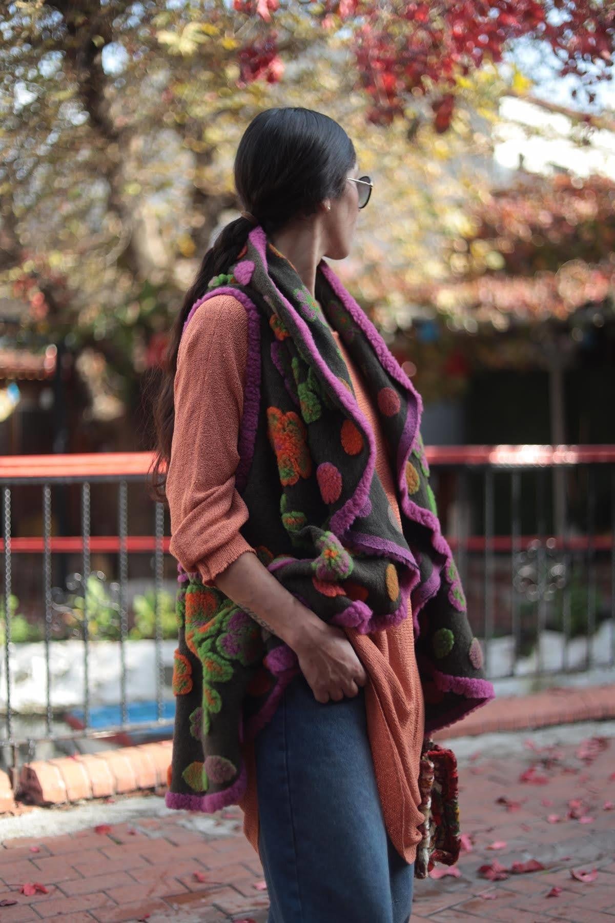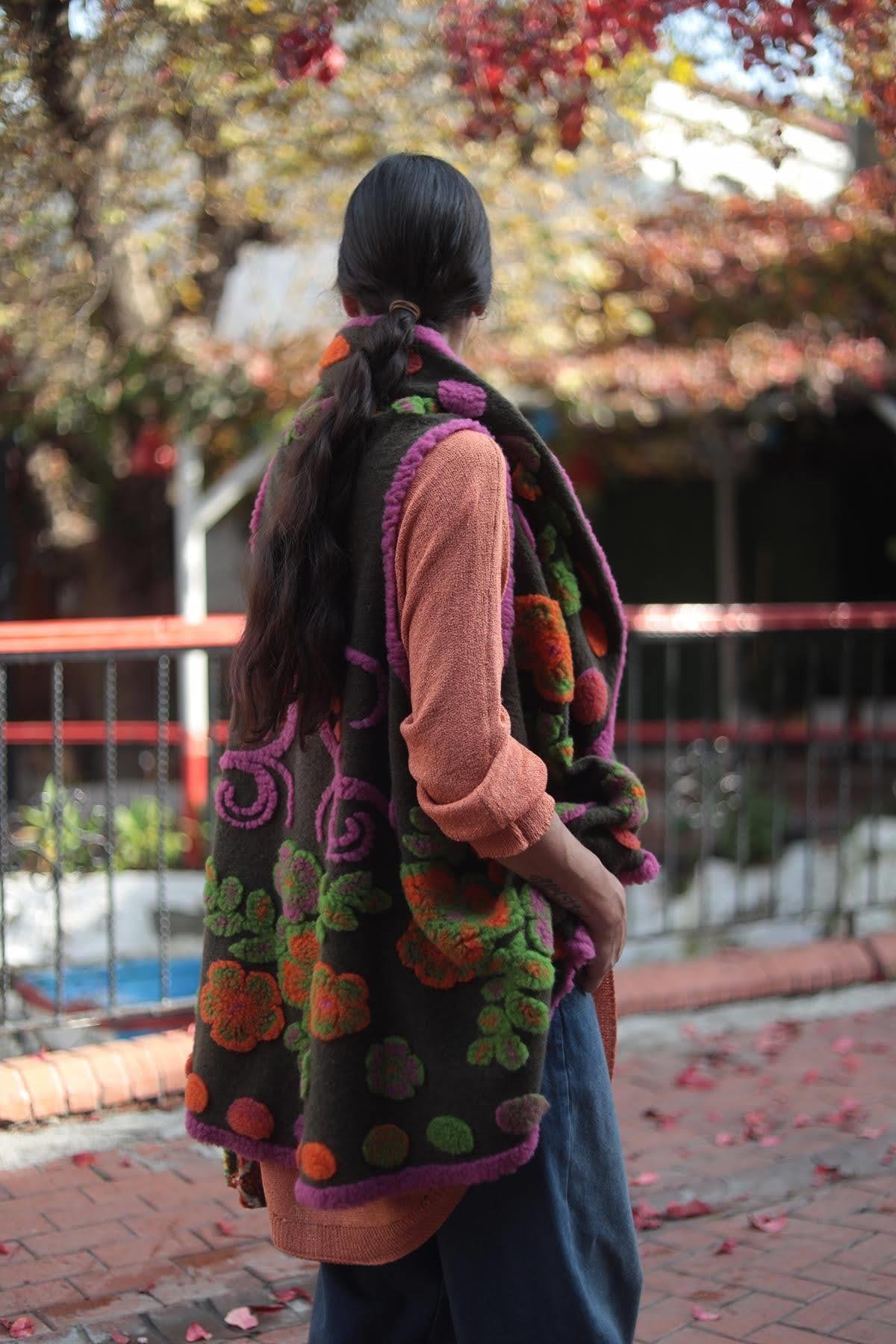 Haki Çiçek Desenli Keçe Yelek (KY-FAL-005-YUN-HA3-STD)