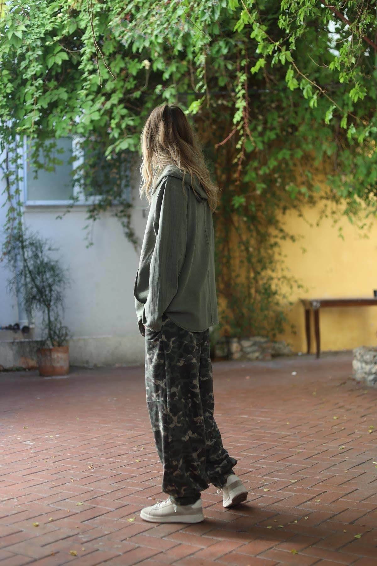 Haki Düğmeli Kanguru Cepli Kapüşonlu Sweat (KSW-RSD-002-PA-HA-S/M)