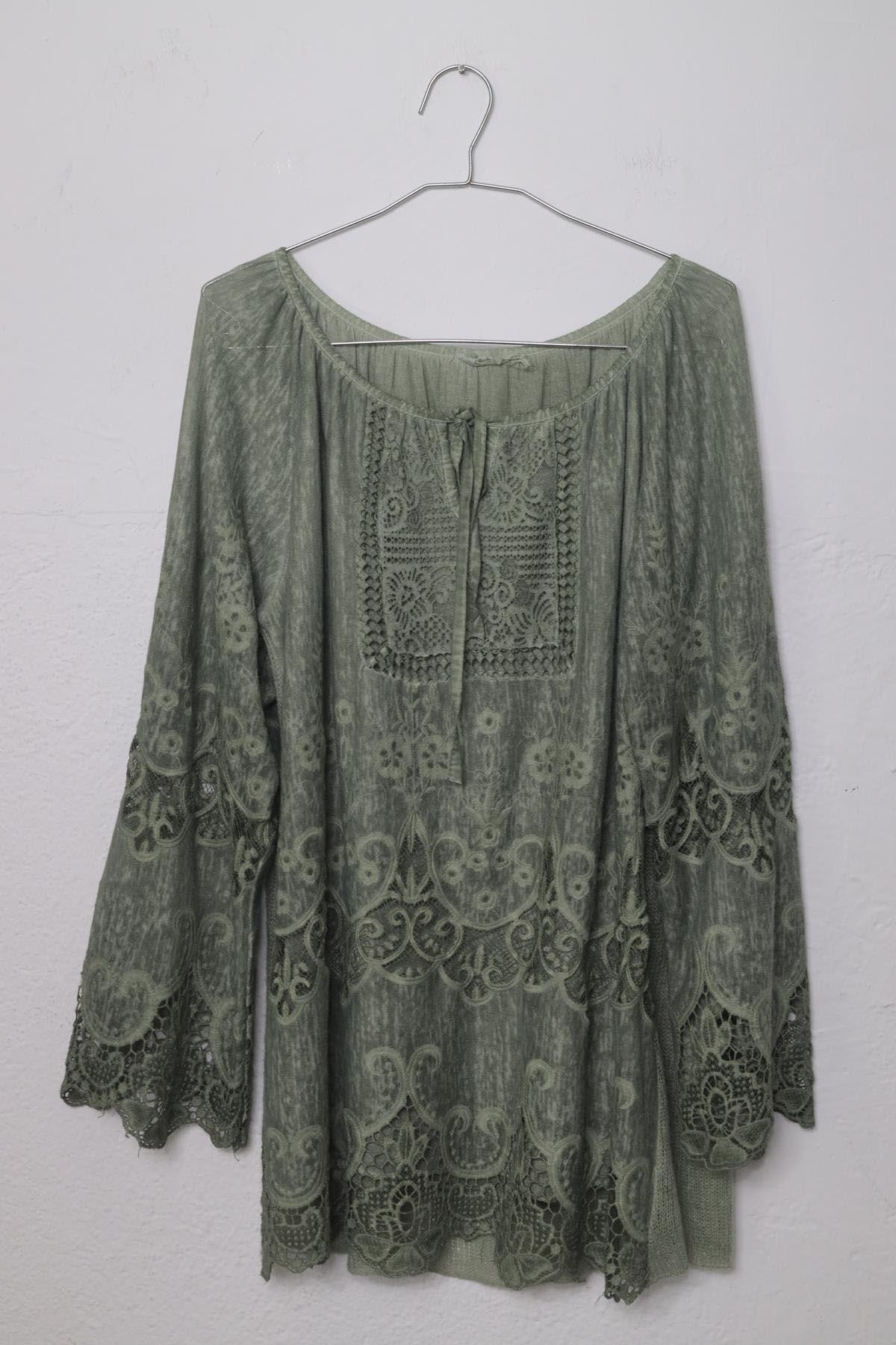 Haki İp Detaylı Dantelli Yünlü Bluz